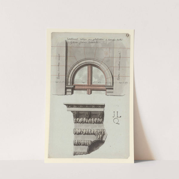 Entablement rustique avec pétrifications et bossages taillés de glaçons ; Croisée cintrées (1786) by Jean Jacques Lequeu - Wall Art Print