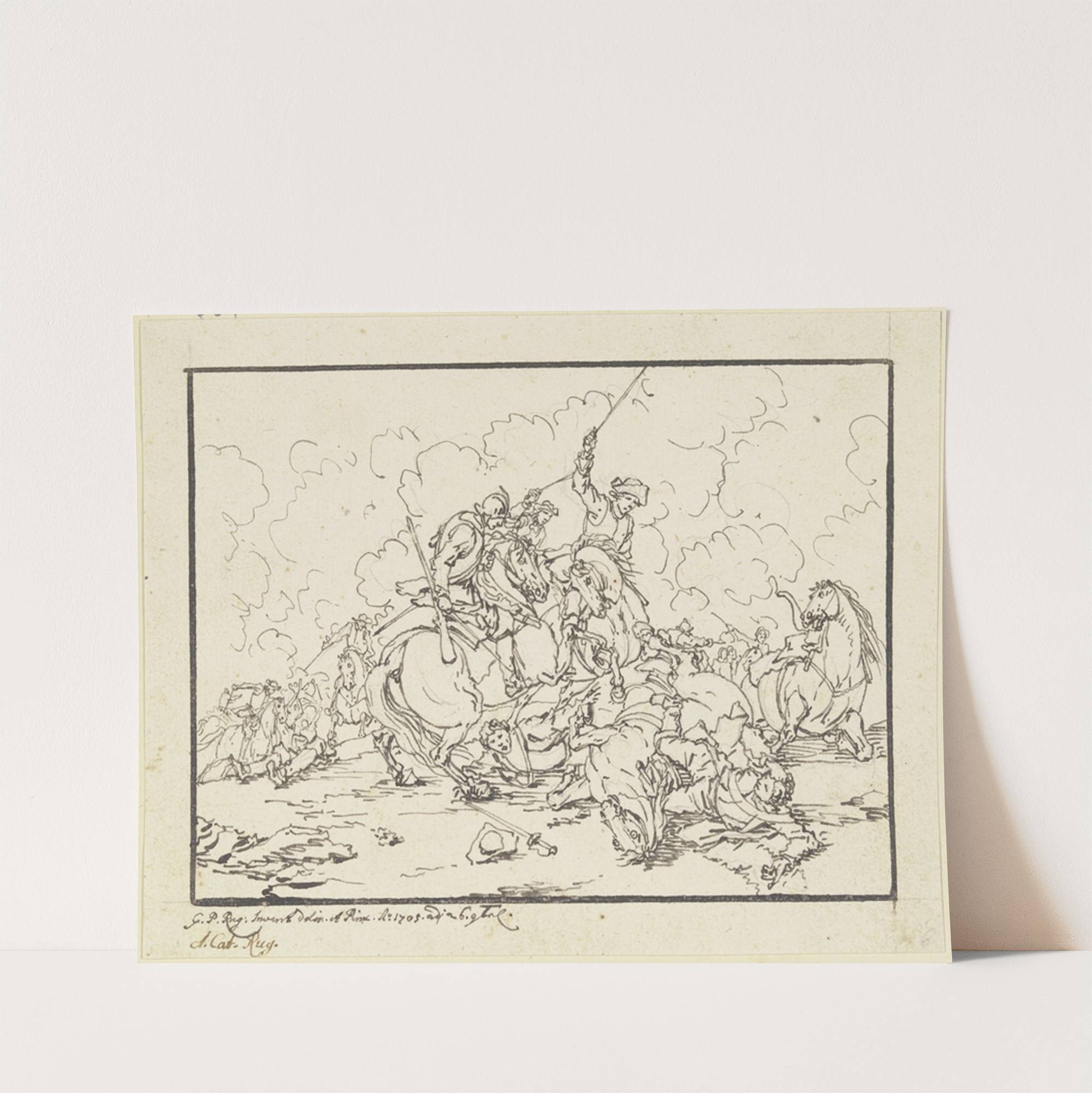 Equestrian combat by Georg Philipp Rugendas the Elder - Wall Art Print