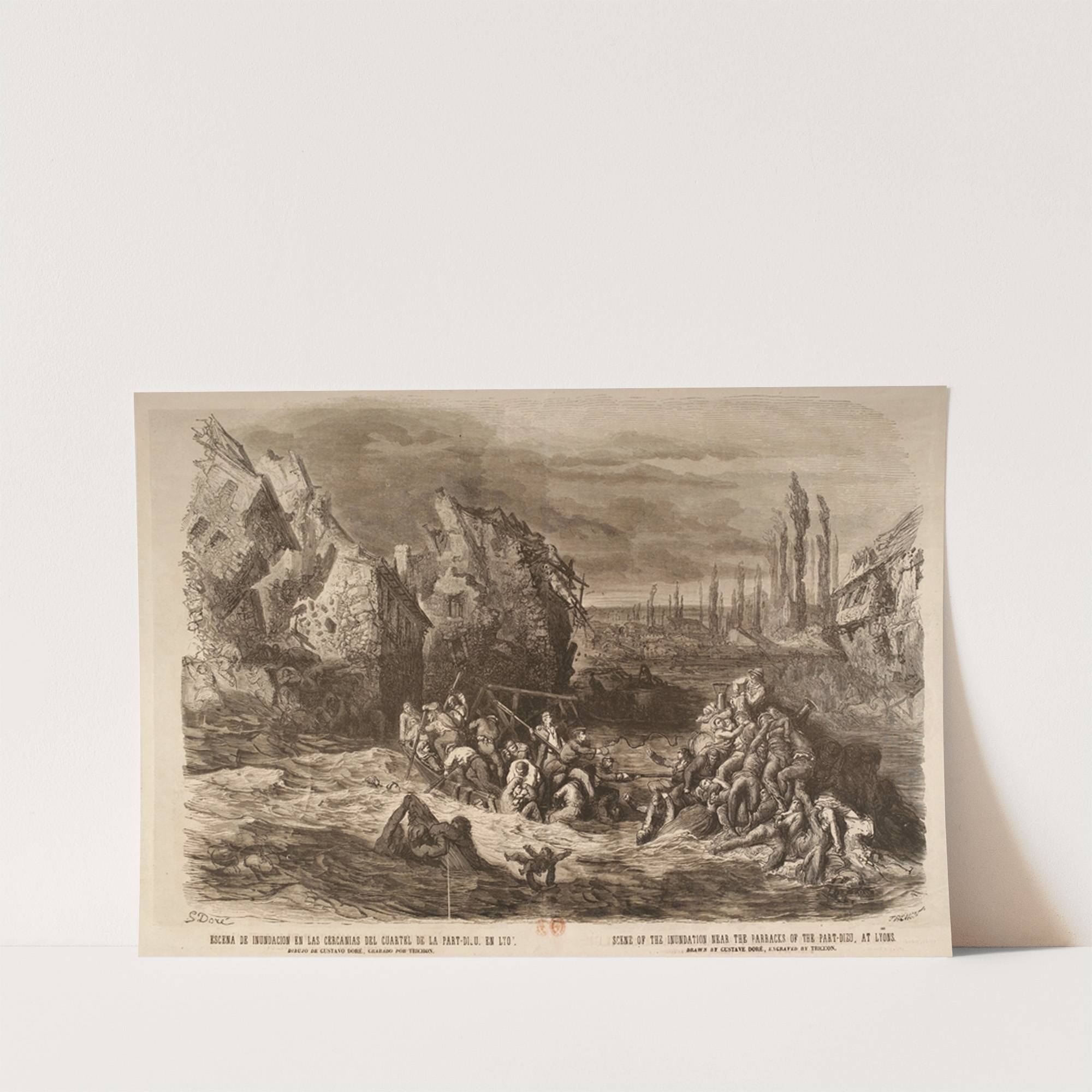 Escena de inundacion en las cercanias del cuartel de la Part-Dieu, en Lyon (1856) by Gustave Doré - Wall Art Print