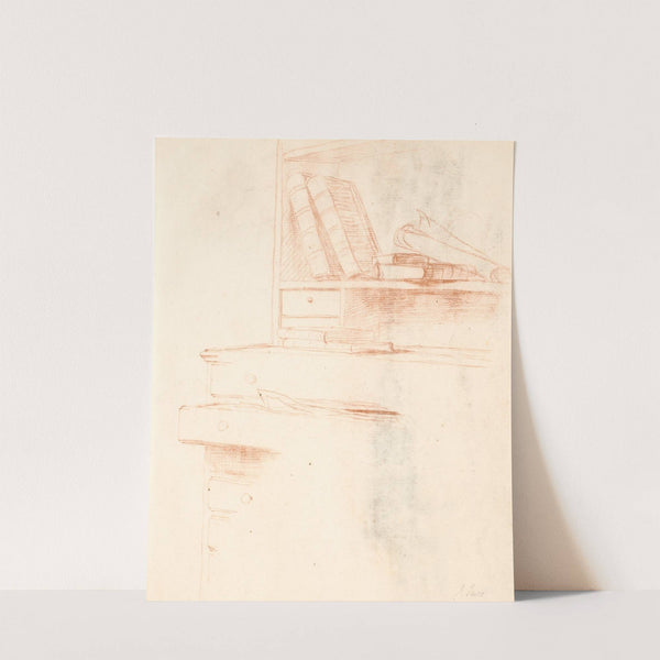 Et skuffemøbel med en boghylde, studie til dobbeltportrættet af Juel og hans kone ved staffeliet (1791) by Jens Juel - Wall Art Print