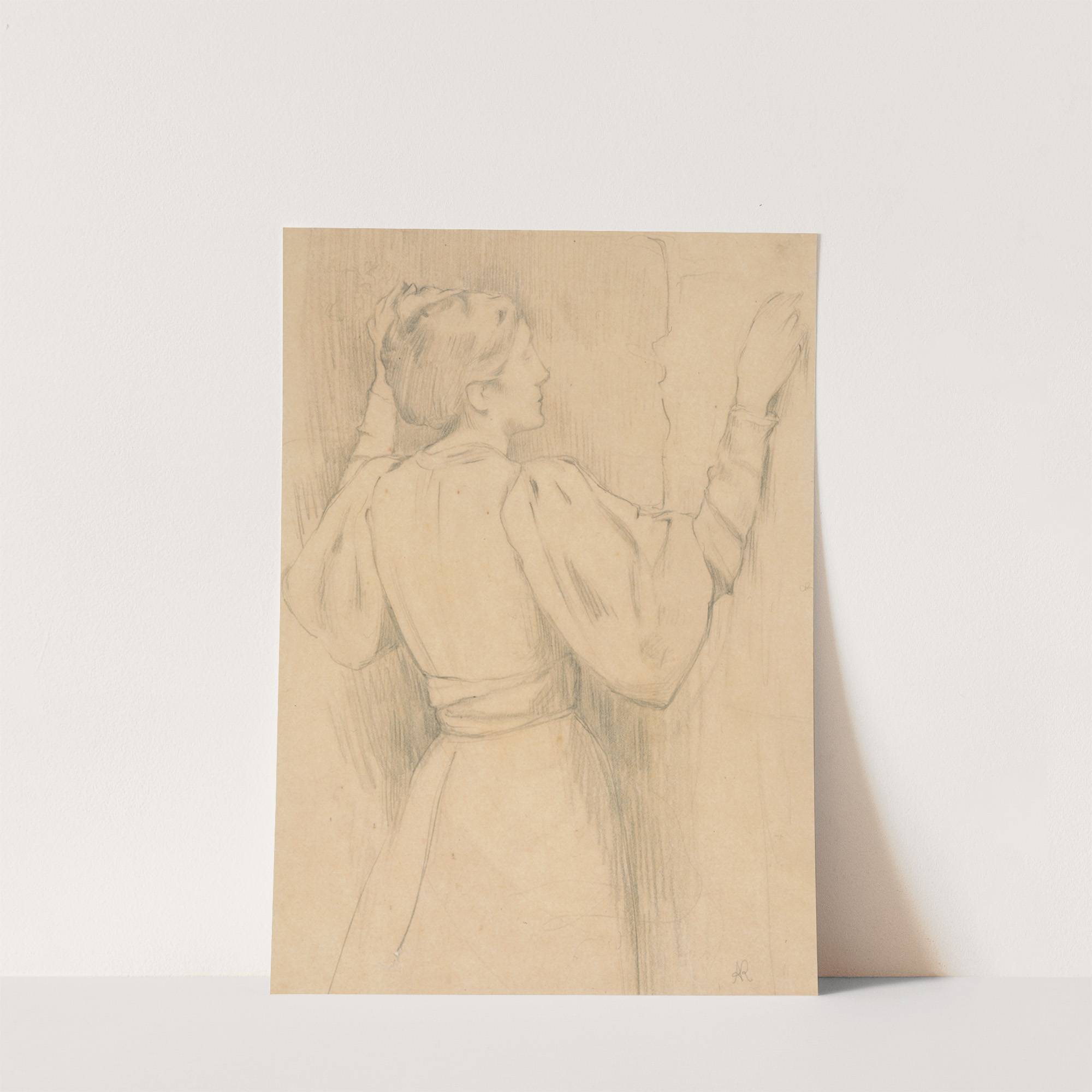Etude de femme en costume moderne, les bras levés by Ary Ernest Renan - Wall Art Print