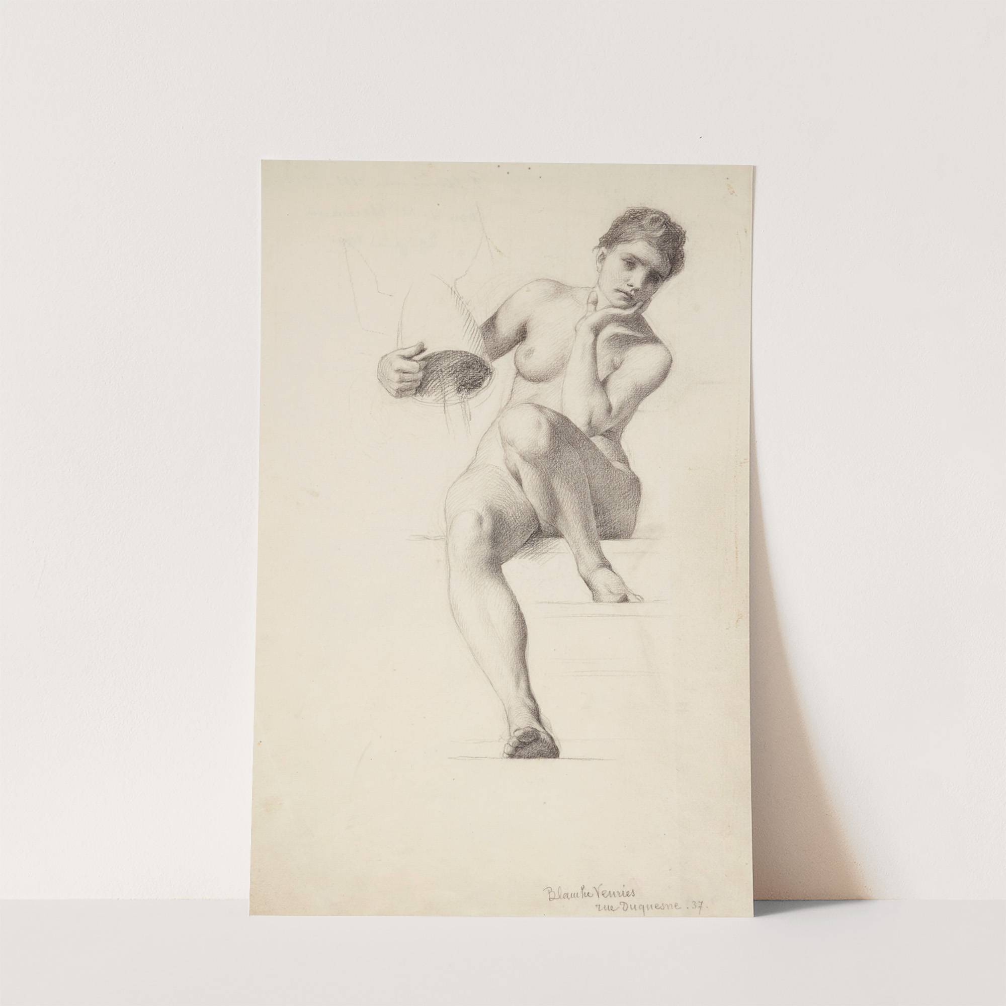 Etude de femme nue assise, la tête appuyée by François Emile Ehrmann - Wall Art Print