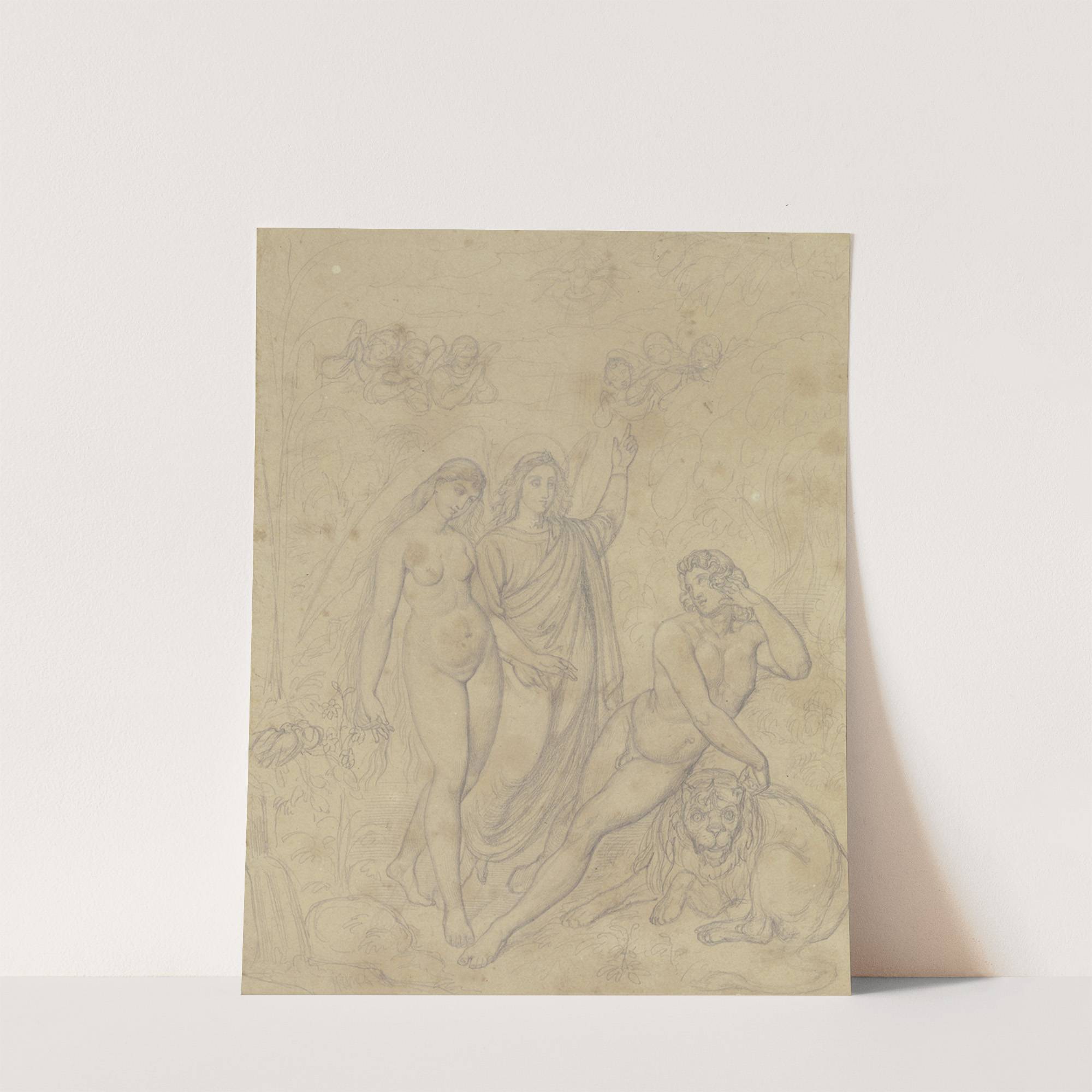 Eva wird von einem Engel Adam zugeführt by Ferdinand Fellner - Wall Art Print