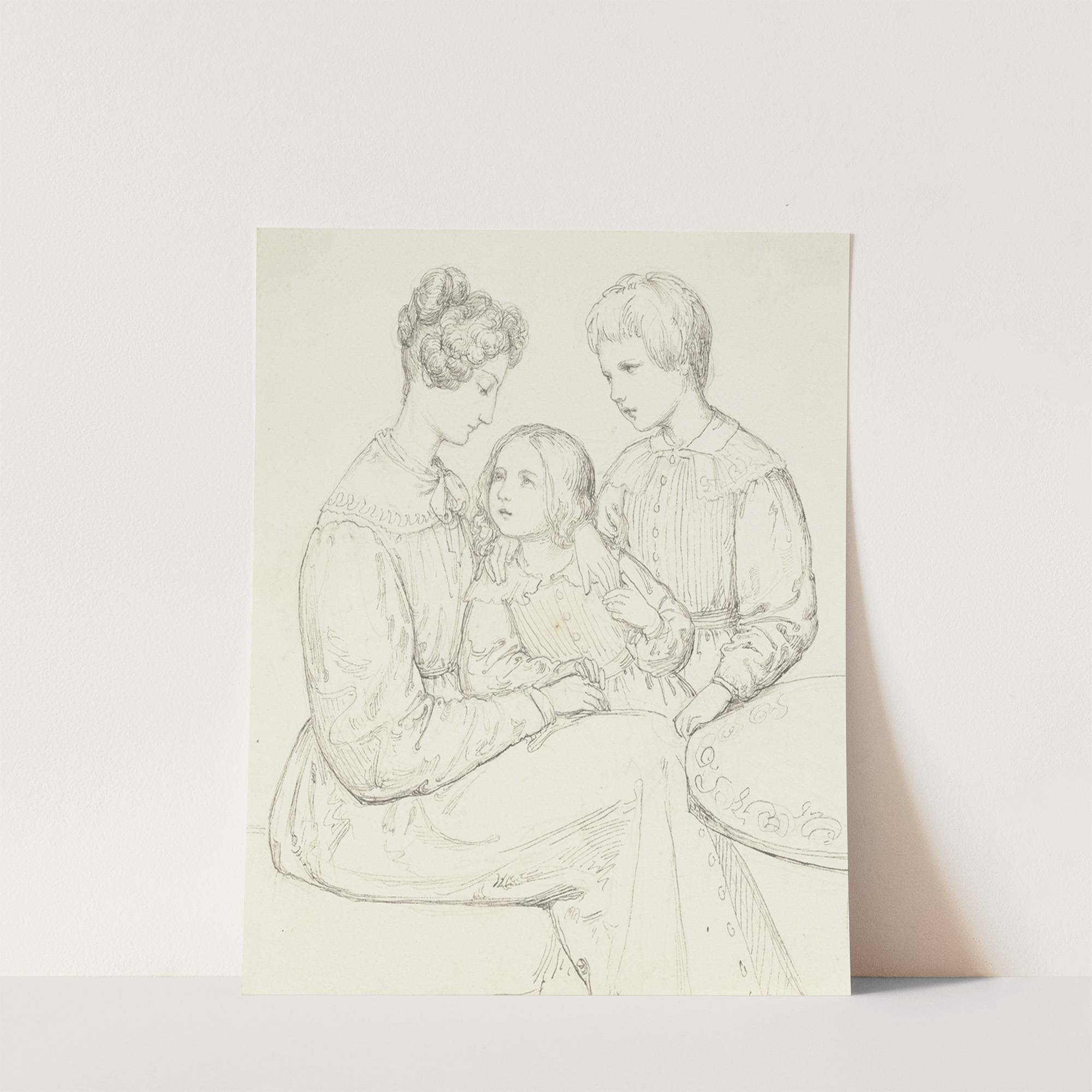 Familienbild; Sitzende Mutter mit Sohn und Tochter by Marie Ellenrieder - Wall Art Print
