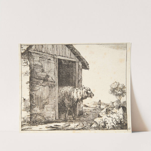 Får på vej ud af en stald by Marcus de Bye - Wall Art Print