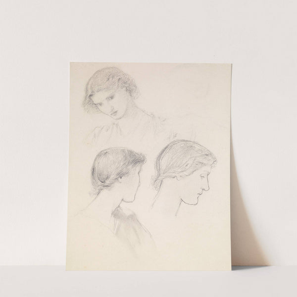 Female – Head Study of a Girl (Three Studies) by Sir Edward Coley Burne-Jones - Wall Art Print