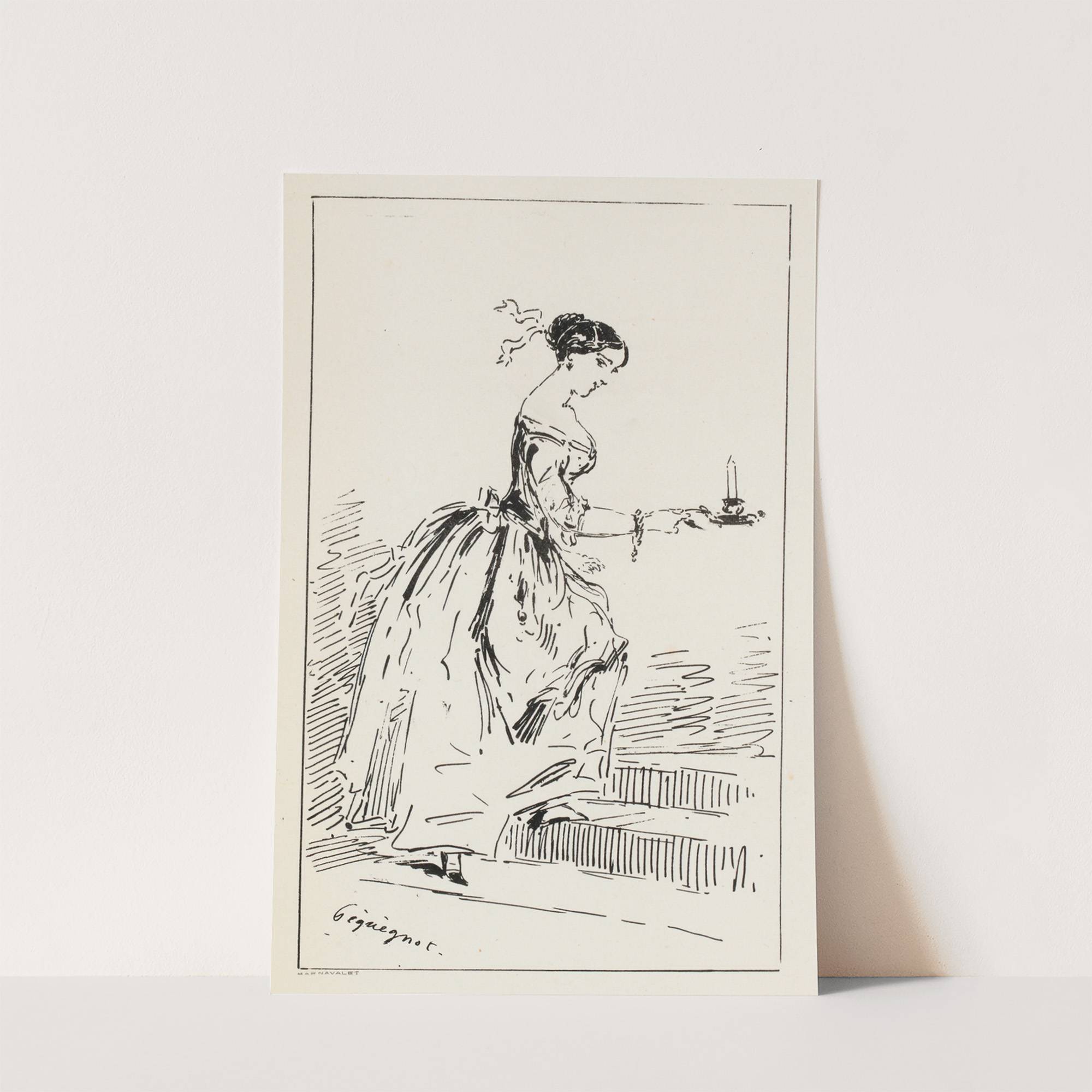 Femme montant un escalier, bougeoir à la main de profil, allant vers la droite (1850) by Auguste Péquégnot - Wall Art Print