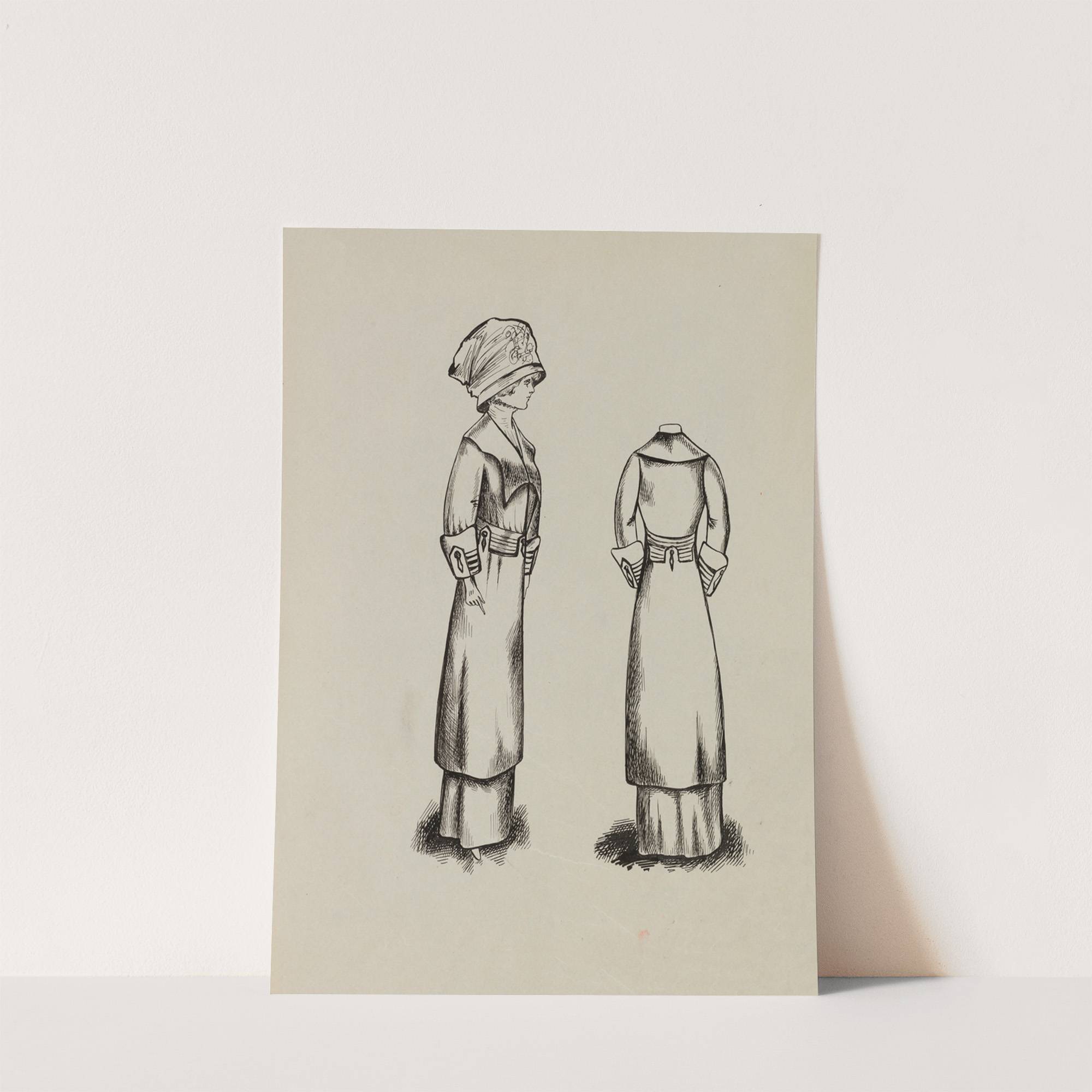 Figure de femme de trois-quart portant un manteau sur robe longue et un grand chapeau 12 (1909-1911) by Anonymous - Wall Art Print