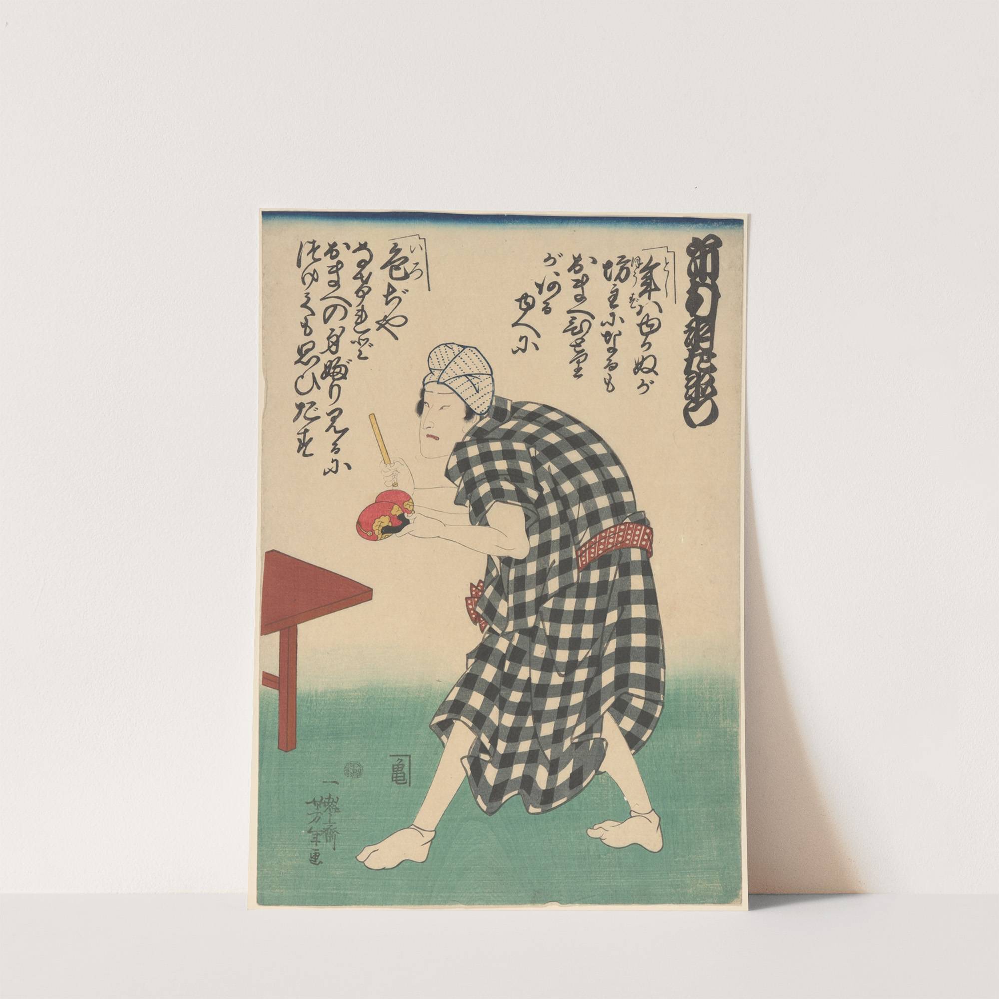 Figure in Checked Black and White Costume by Yoshikazu - Wall Art Print