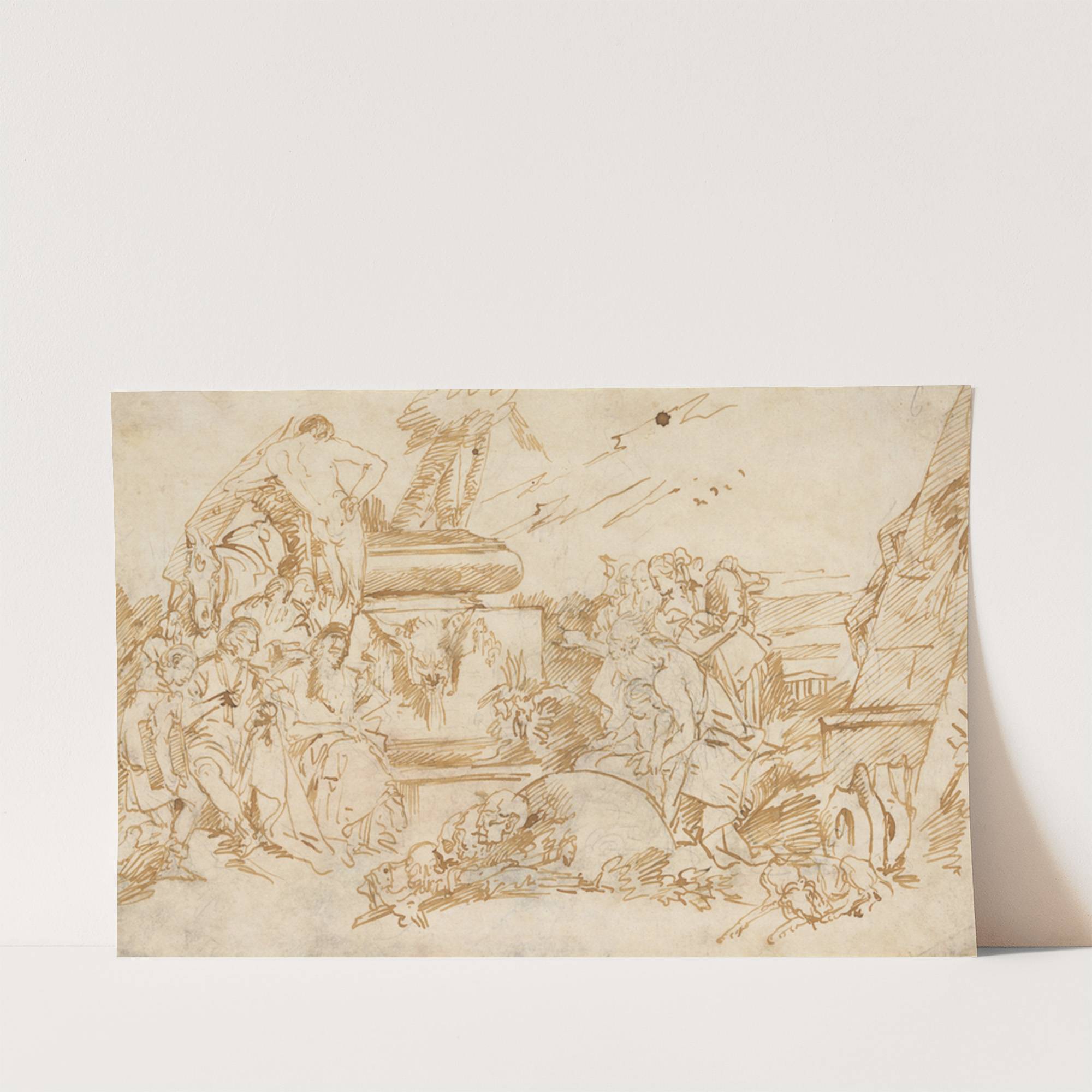 Figures in Antique Dress Grouped About a Pagan Tomb by Lorenzo Baldissera Tiepolo - Wall Art Print