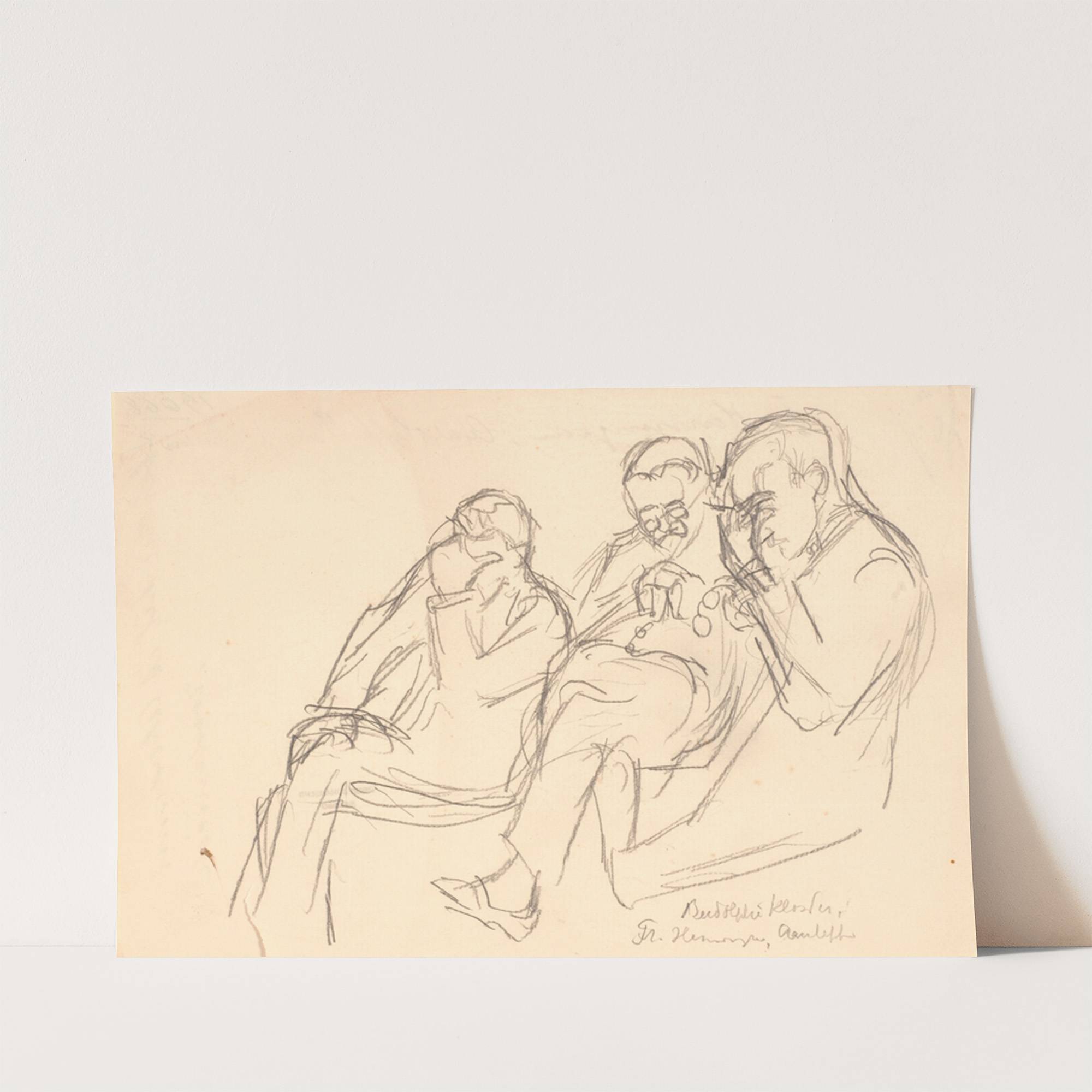 Figurskitse Tre siddende mænd- Fr Henningsen, Aarsleff og P Johansen by Viggo Johansen - Wall Art Print
