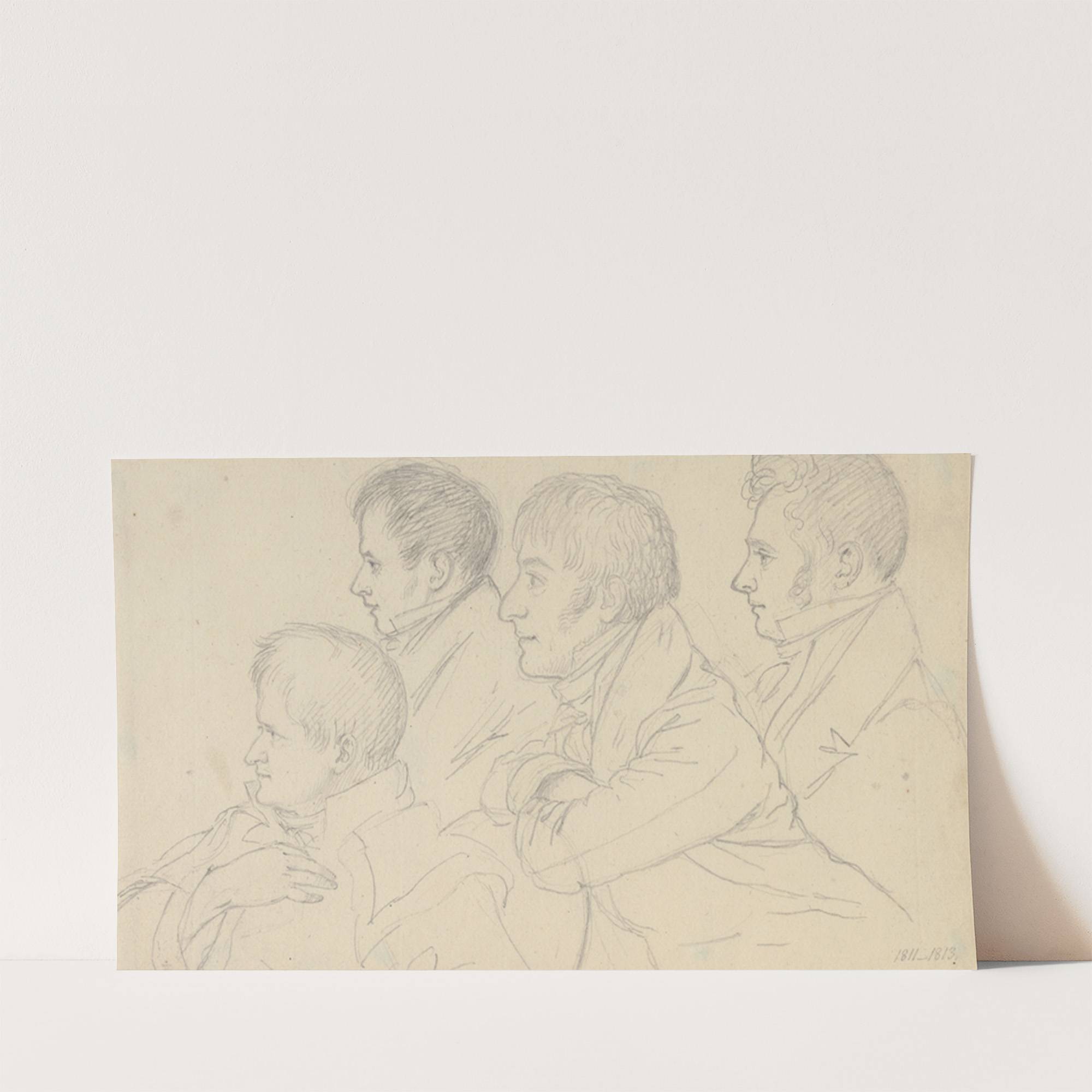 Fire hoveder i profil mod venstre by Christoffer Wilhelm Eckersberg - Wall Art Print
