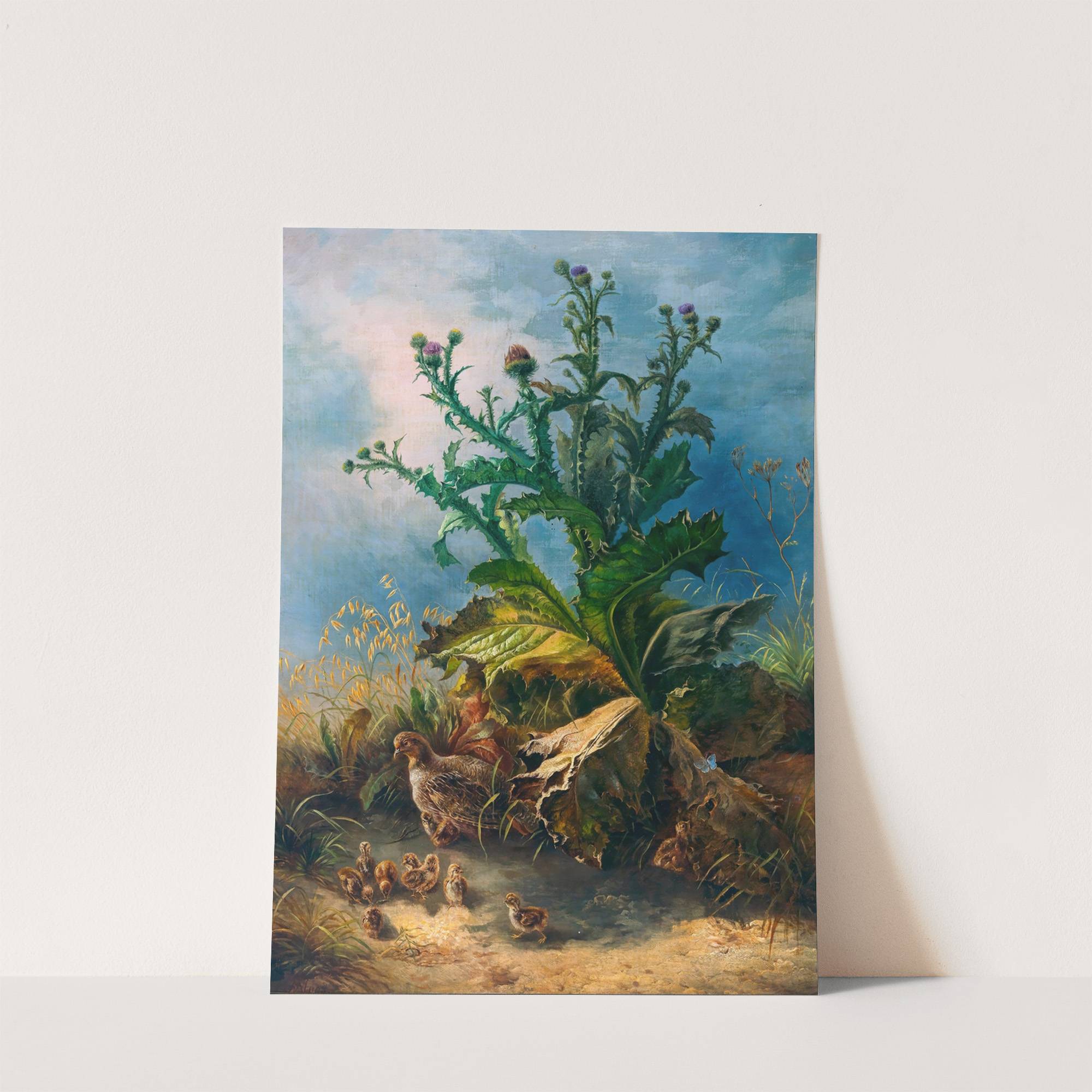 Flowering Thistles with a Black Grouse Family by Friedrich Schauta-Moos - Wall Art Print