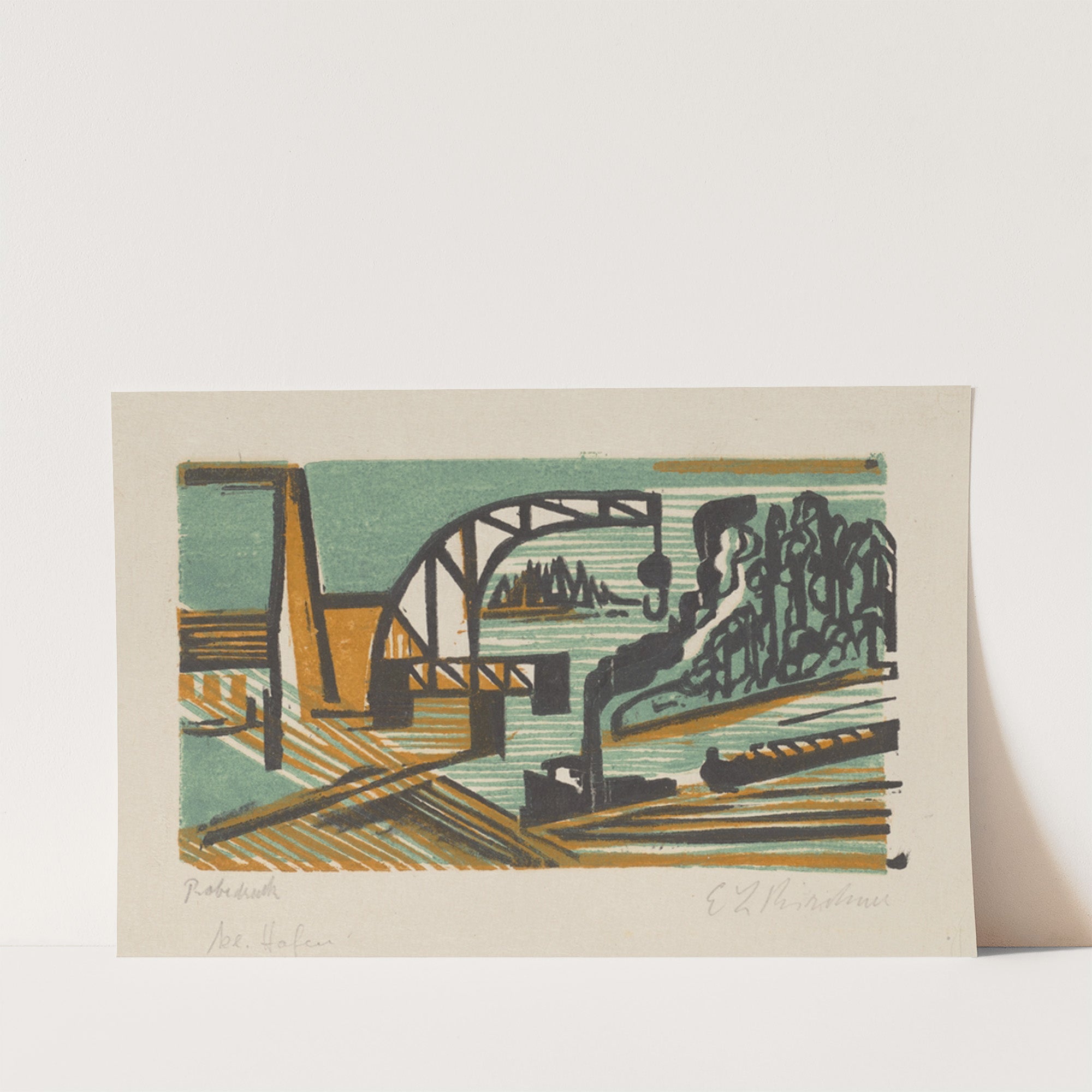 Flusslandschaft mit Kran und Schleppzug (1927 – 1928) by Ernst Ludwig Kirchner - Wall Art Print