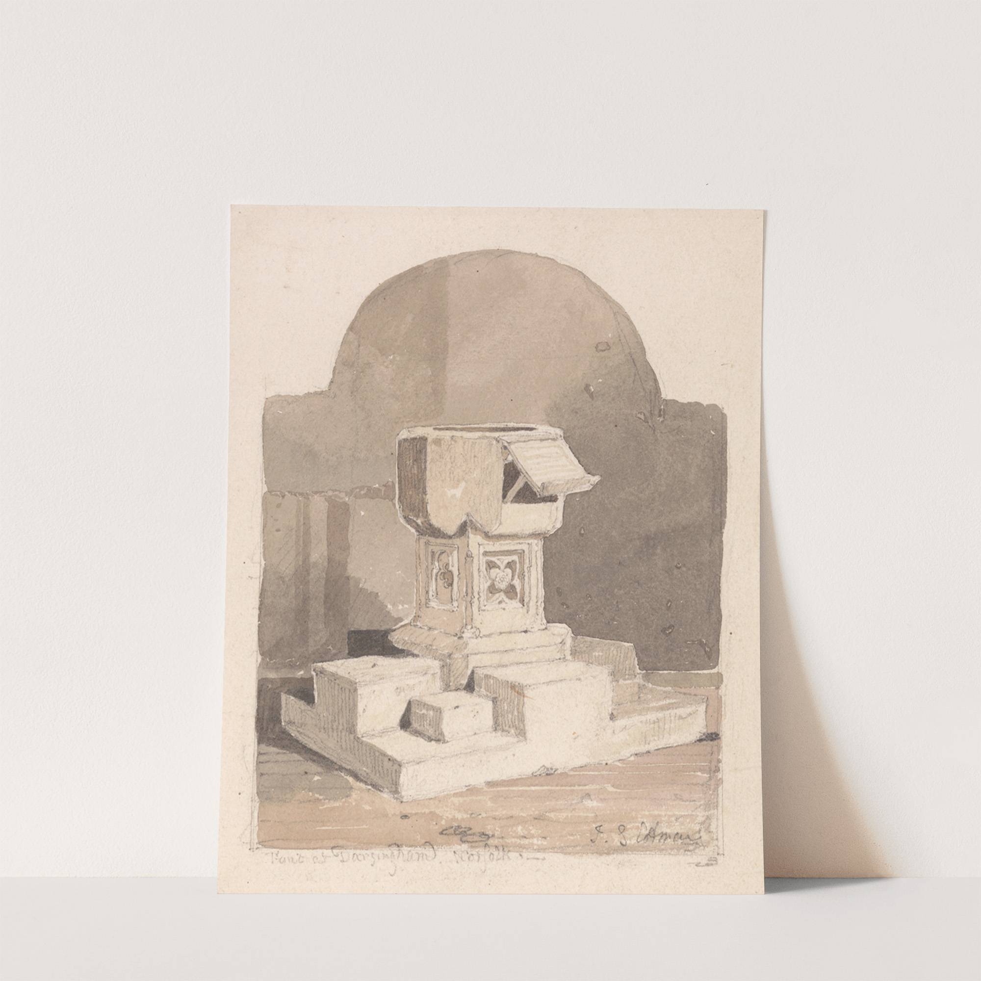 Font at Dersingham Church, Norfolk by John Sell Cotman - Wall Art Print