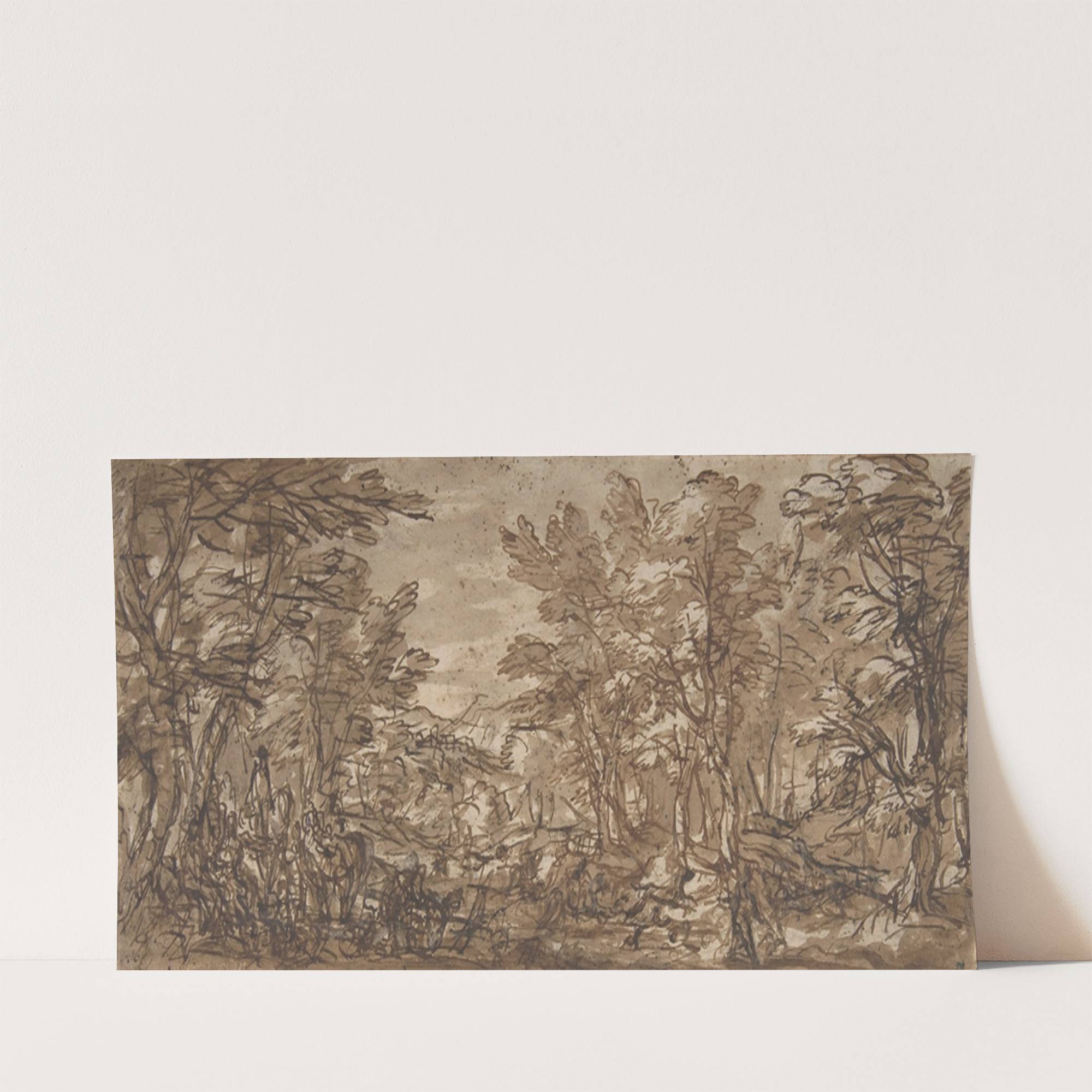 Forest Scene, a Halt at the Left, a Hunt at the Center (1612–66) by Pier Francesco Mola - Wall Art Print