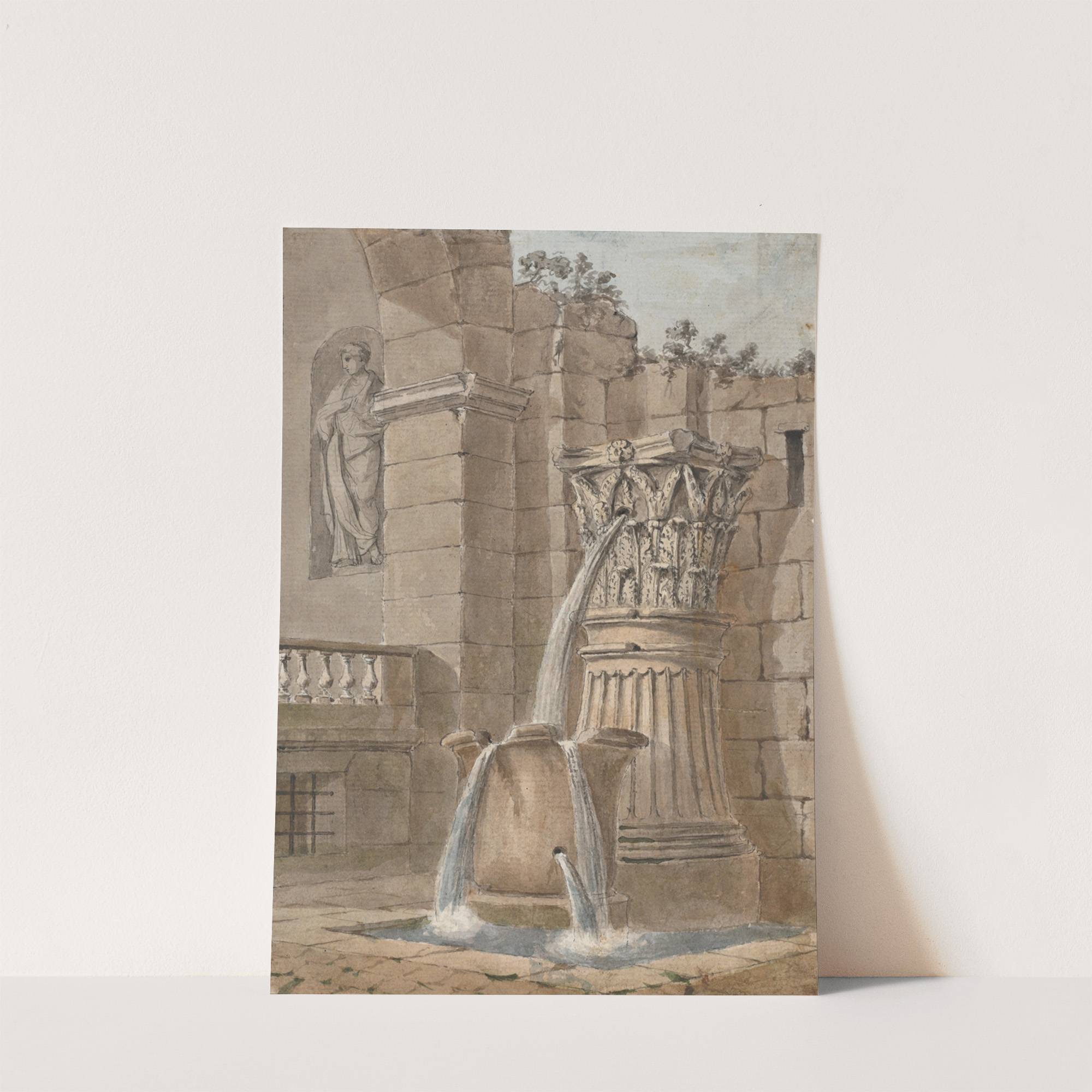 Fountain in a Courtyard by Charles Louis Clérisseau - Wall Art Print