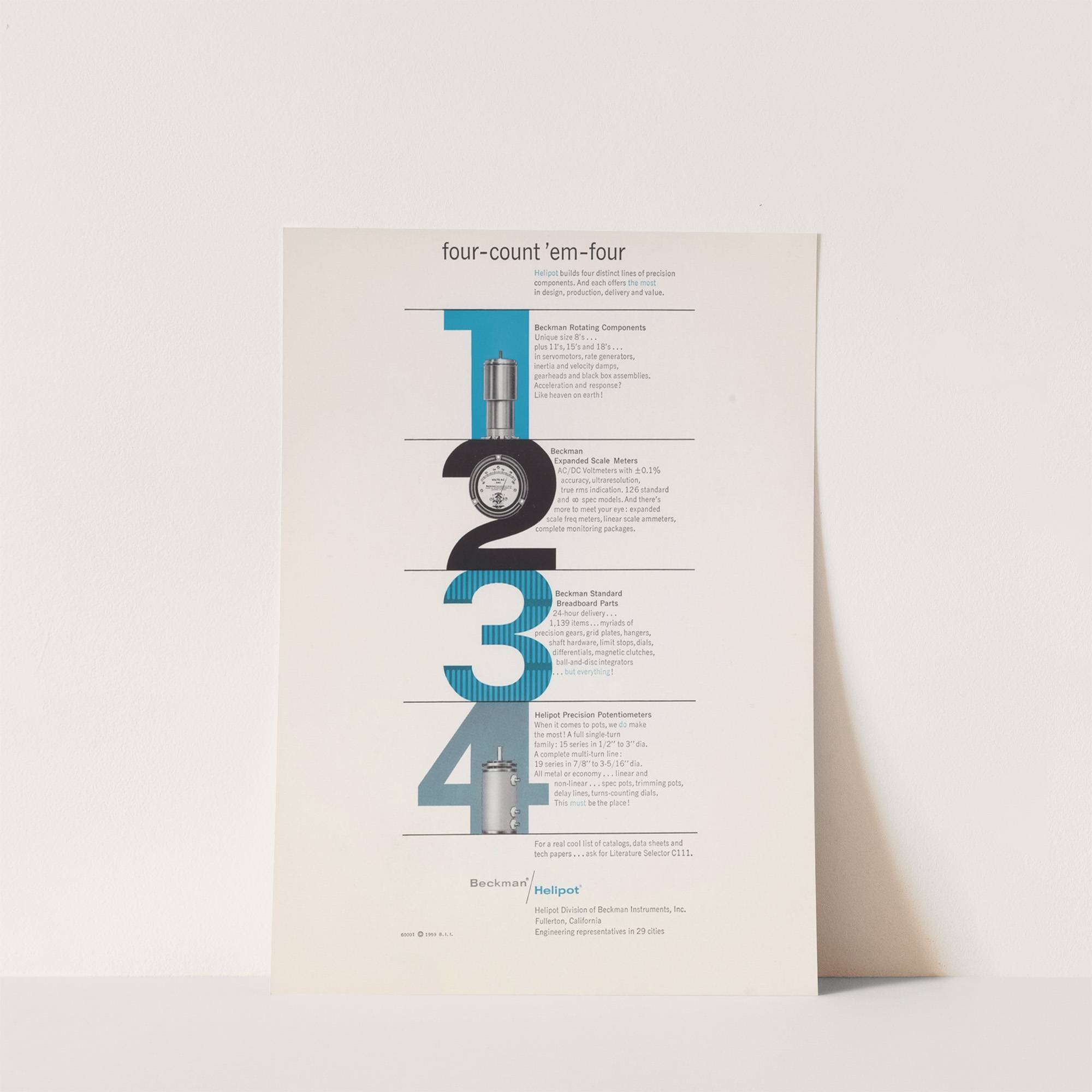 This striking art print features a modern, informative design that highlights the details of a laboratory instrument in a visually engaging manner. The main focus is on a sequence of large, bold numbers from "1" to "4," each number progressively...