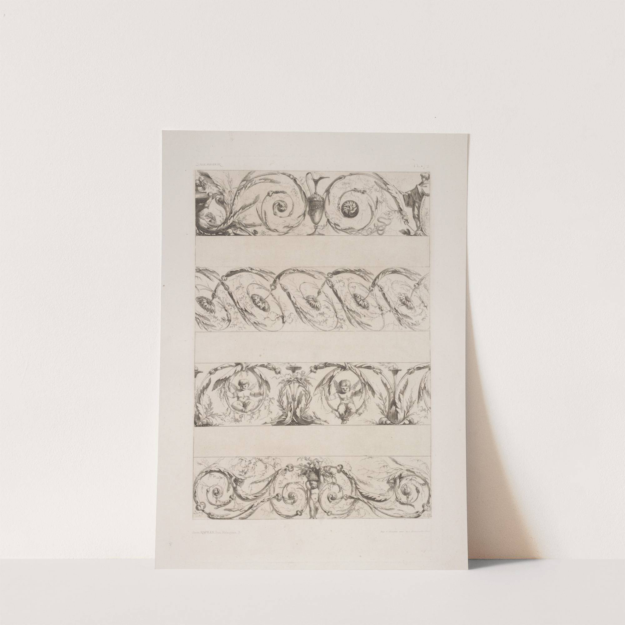 This art print features four horizontal rows of intricate, swirling floral patterns drawn in delicate pencil. Each row showcases unique yet harmonious variations of curled, rose-like forms, creating a dynamic sense of movement and depth. The artist's skilled hand captures...