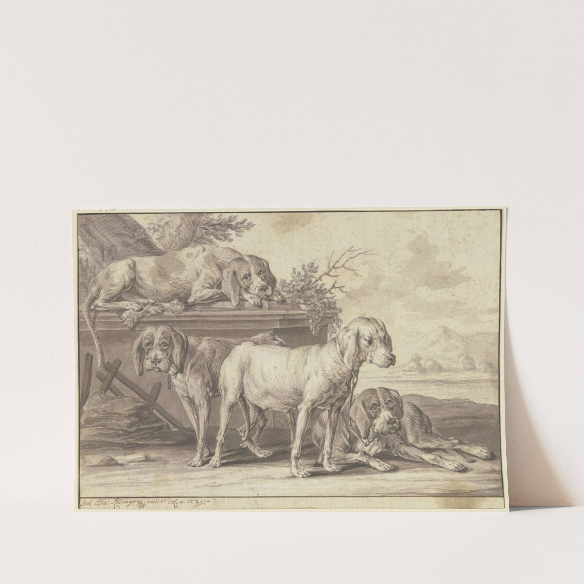 Four hunting dogs (1721) by Johann Elias Ridinger - Wall Art Print