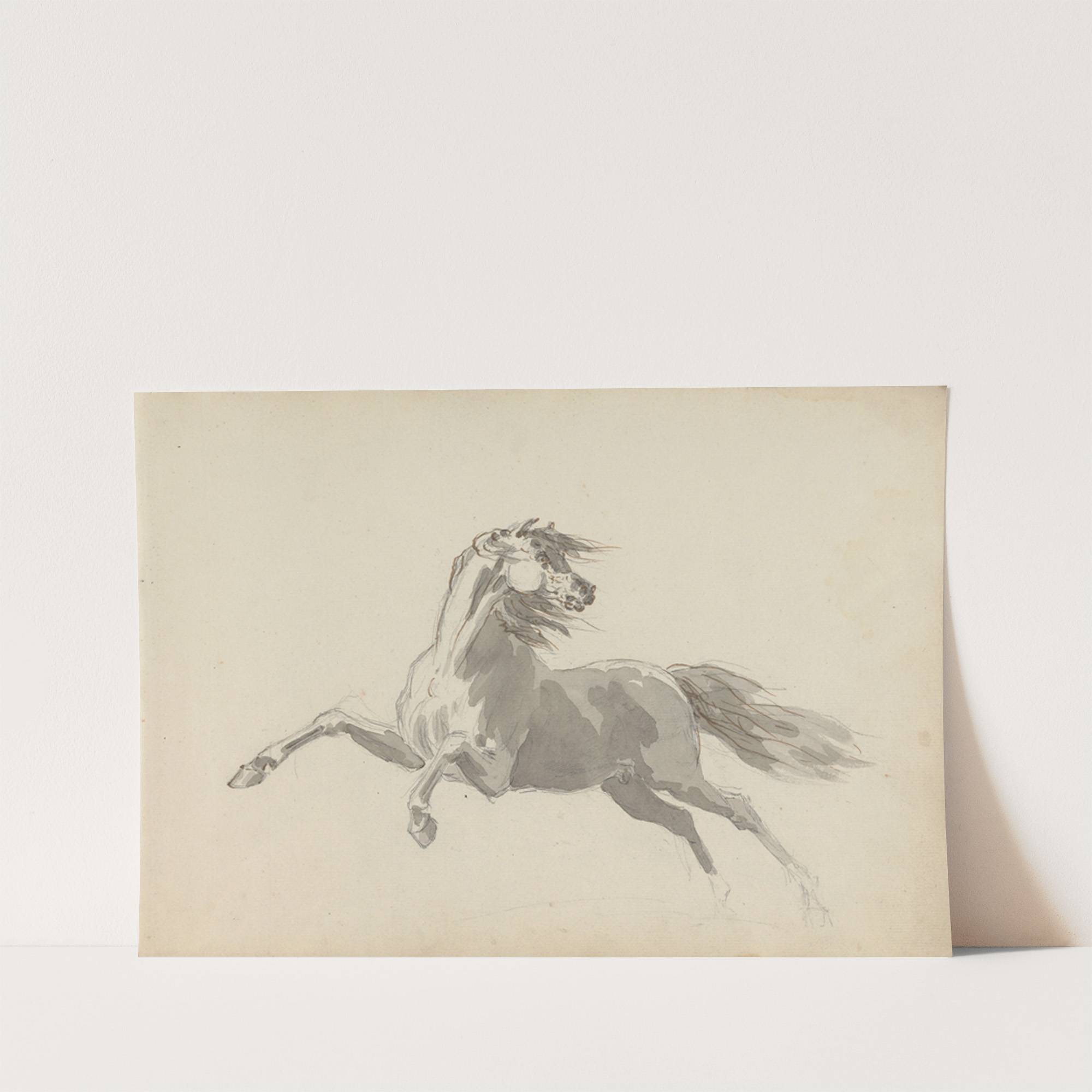 This art print features "Fourty-three Studies of Horses and Riders Pl.03" by Sawrey Gilpin, a masterful illustration of a galloping horse in motion. The image is rendered in soft grayscale watercolors, capturing the dynamic energy and gracefulness of the horse...