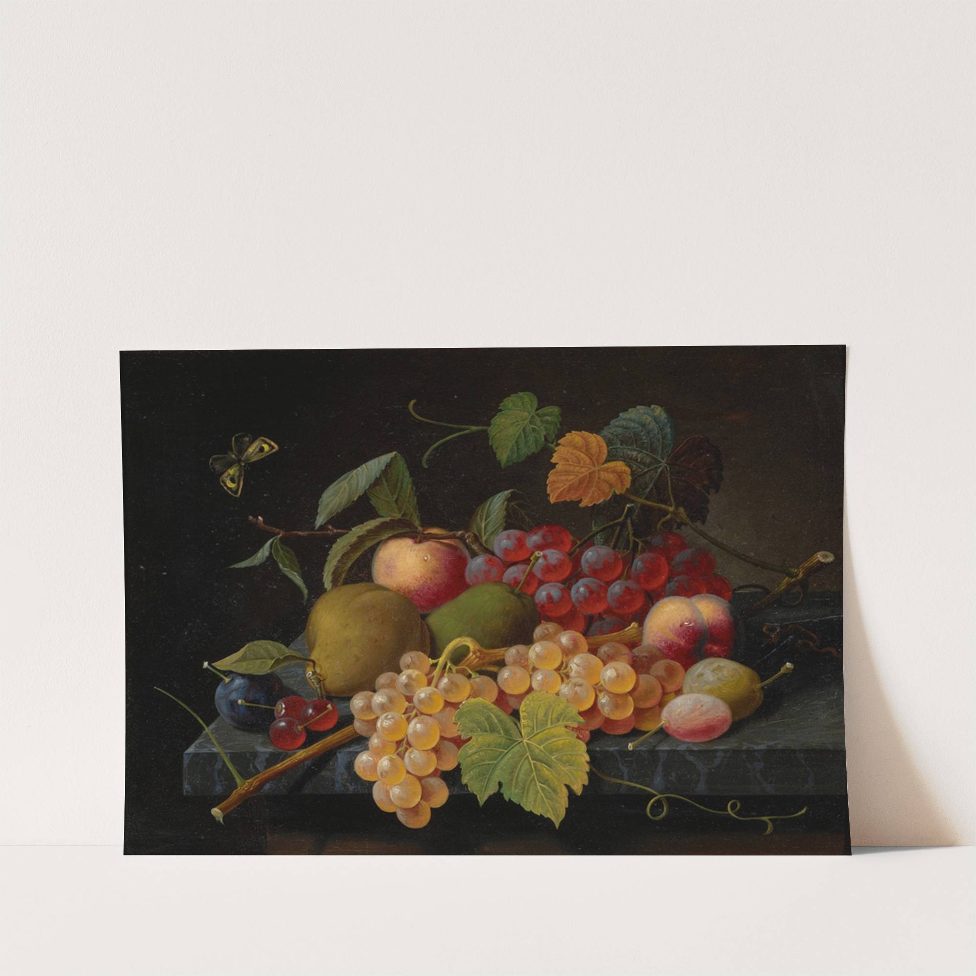 Fruit Still Life with Moth (circa 1860-1872) by Severin Roesen - Wall Art Print