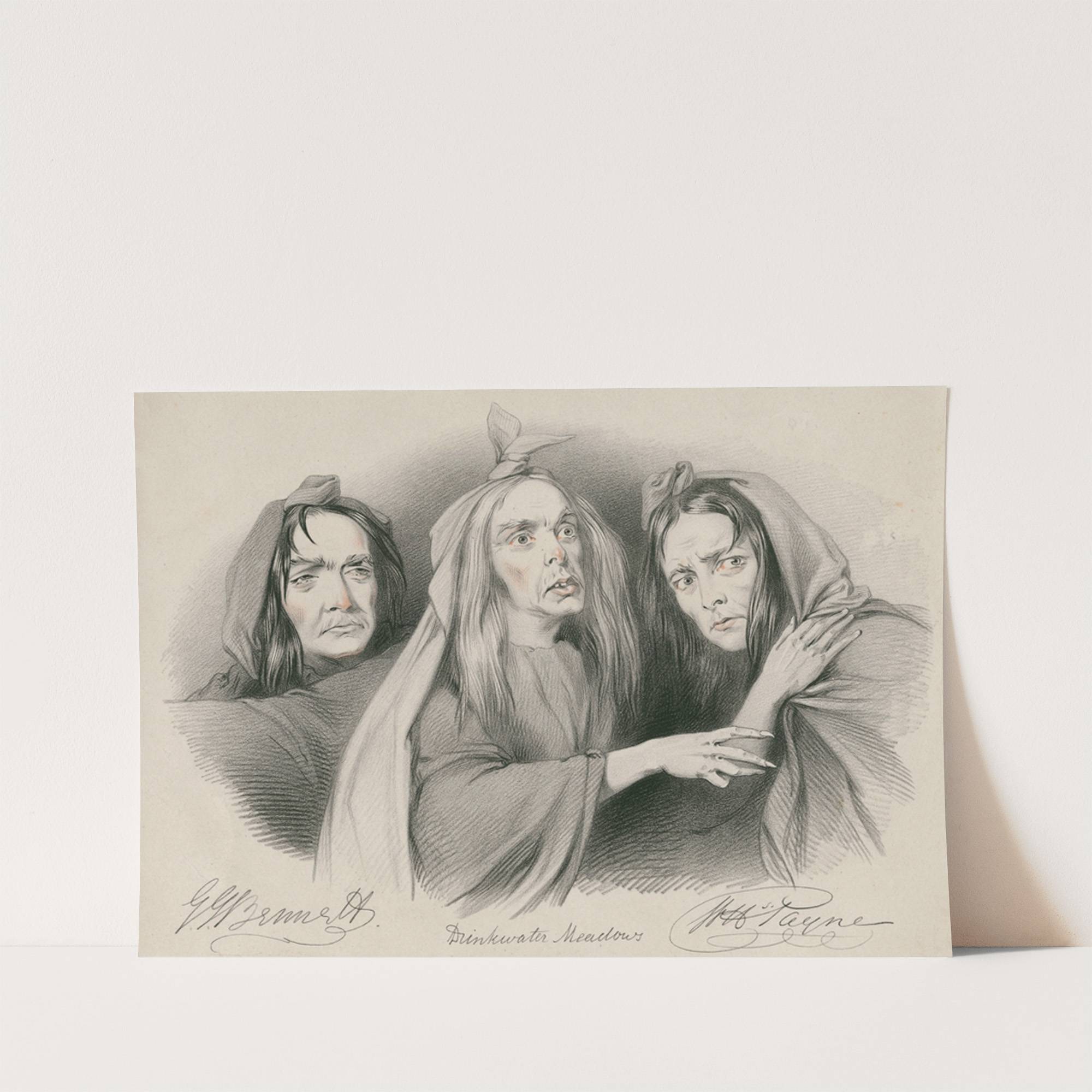 G.J. Bennett, Drinkwater Meadows, W.H. Payne as the three witches in Shakespeare’s Macbeth … ‘A drum! A drum! Macbeth doth come!’ (1838) by Richard James Lane - Wall Art Print
