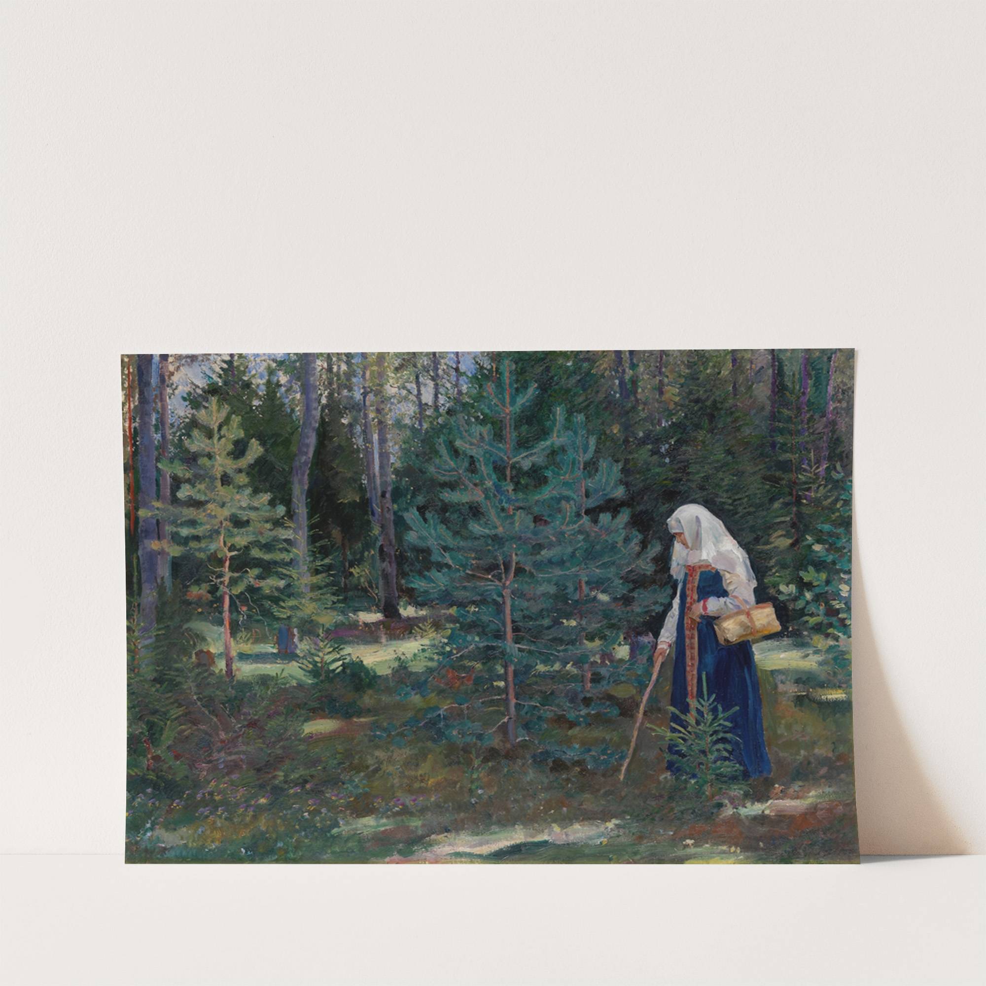Gathering mushrooms in the forest (1927) by Sergei Arsenevich Vinogradov - Wall Art Print