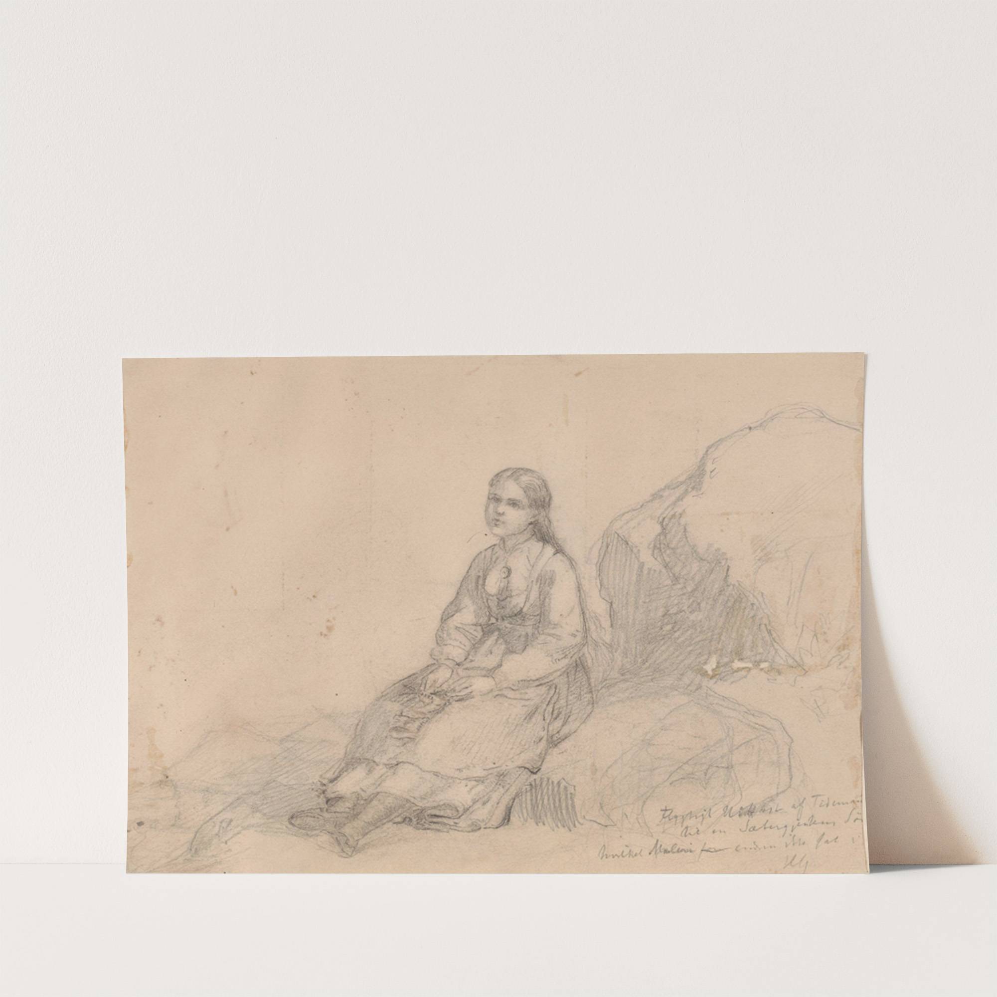 Girl in mountain landscape (1800s) by Hans Gude - Wall Art Print