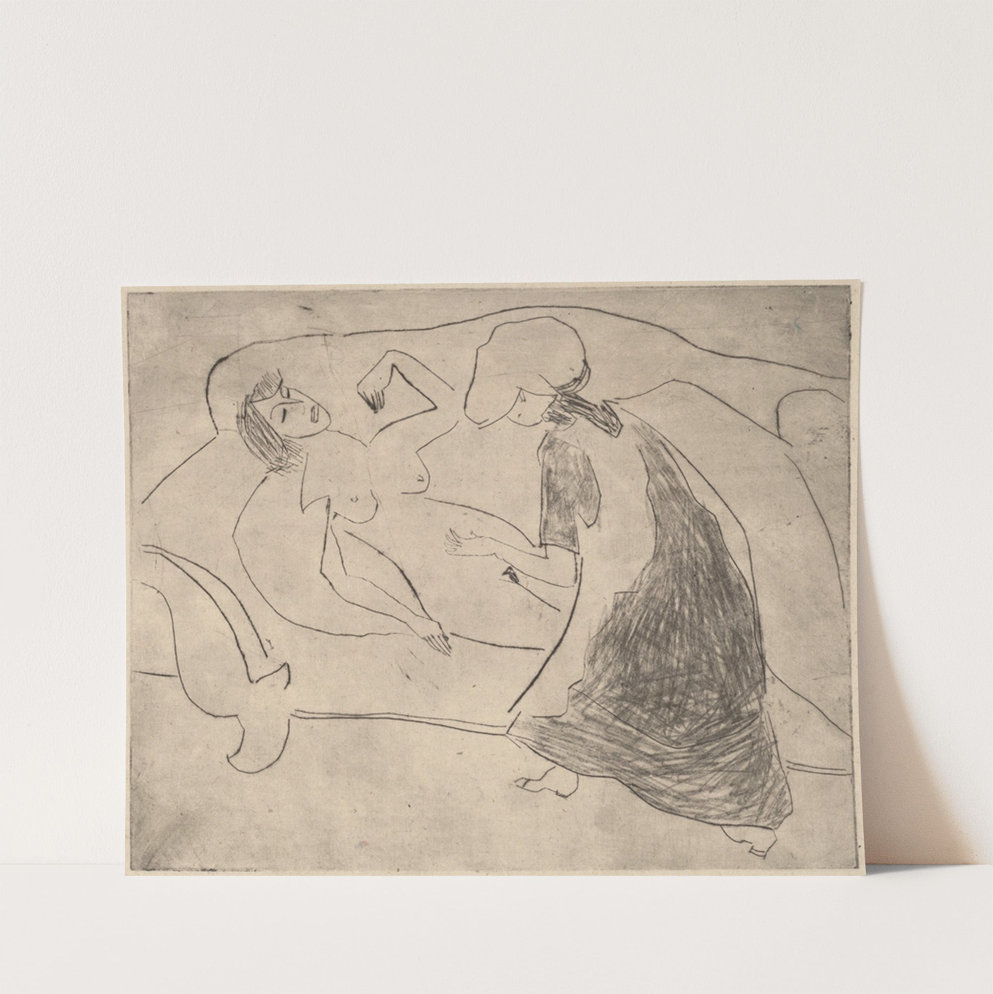 Girl, with Another Rubbing Her Belly (1910) by Ernst Ludwig Kirchner - Wall Art Print