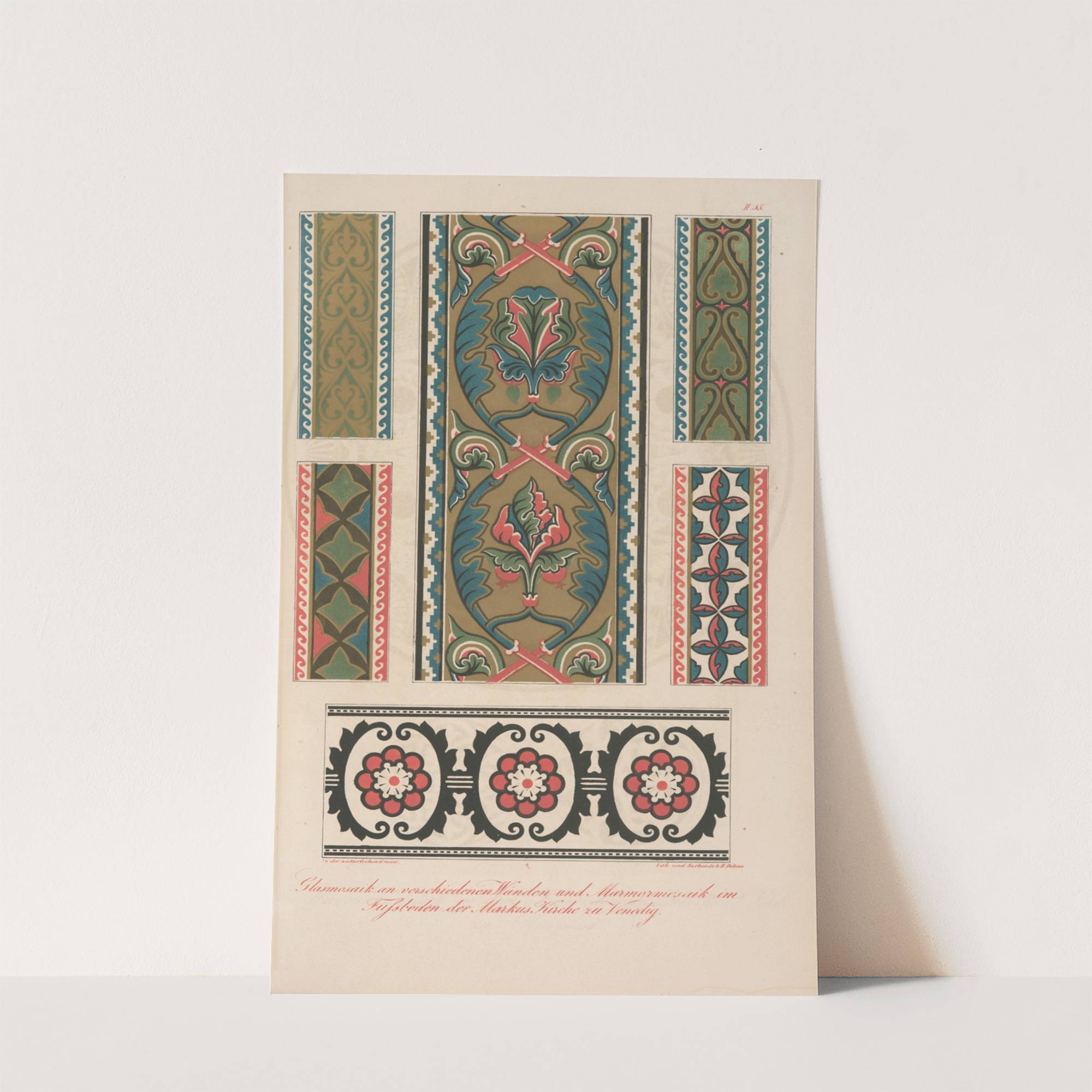 Glasmosaik an verschiedenen Wänden und Marmormosaik im Fussböden der Markus-Kirche zu Venedig by Friedrich Maximilian Hessemer - Wall Art Print