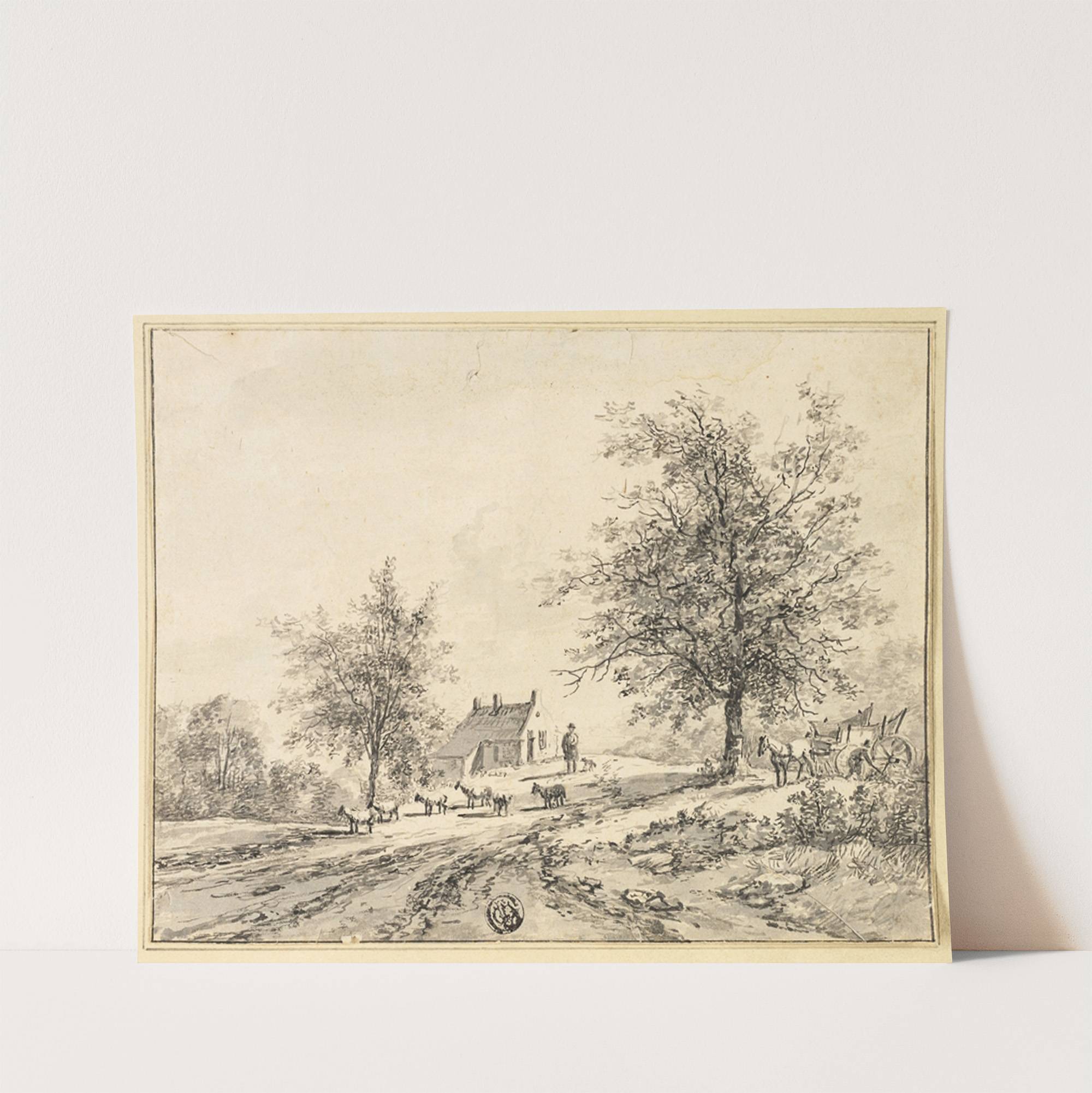 Goatherd, Goats on Road near Carriage and House by Bruno van Straaten - Wall Art Print
