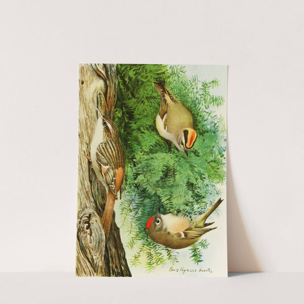 Golden-Crowned Kinglet, Ruby-Crowned Kinglet, Brown Creeper by Louis Agassiz Fuertes - Wall Art Print