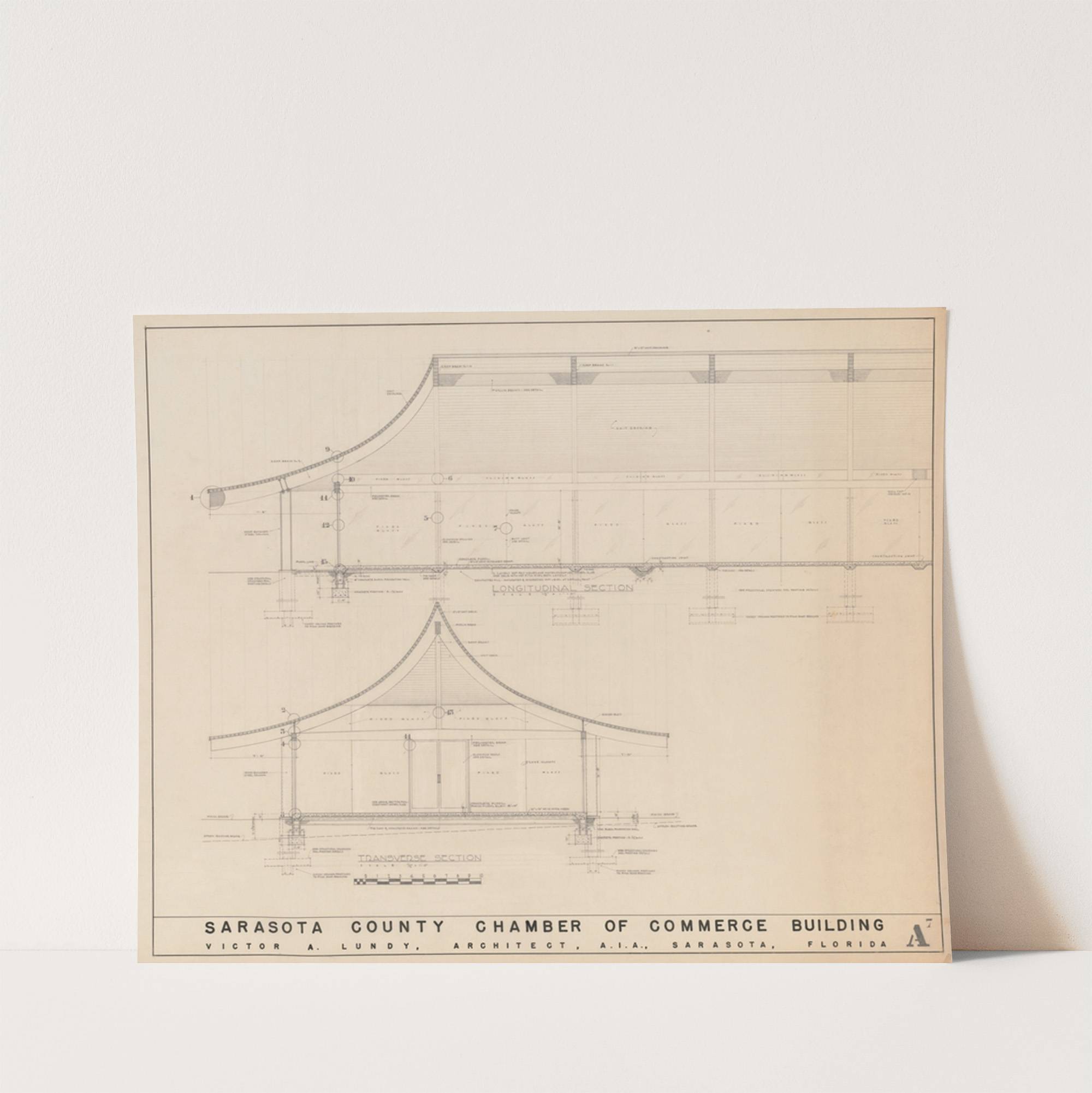 Greater Sarasota Chamber of Commerce building, North Tamiami Trail, Sarasota, Florida, Sections by Victor Alfred Lundy - Wall Art Print