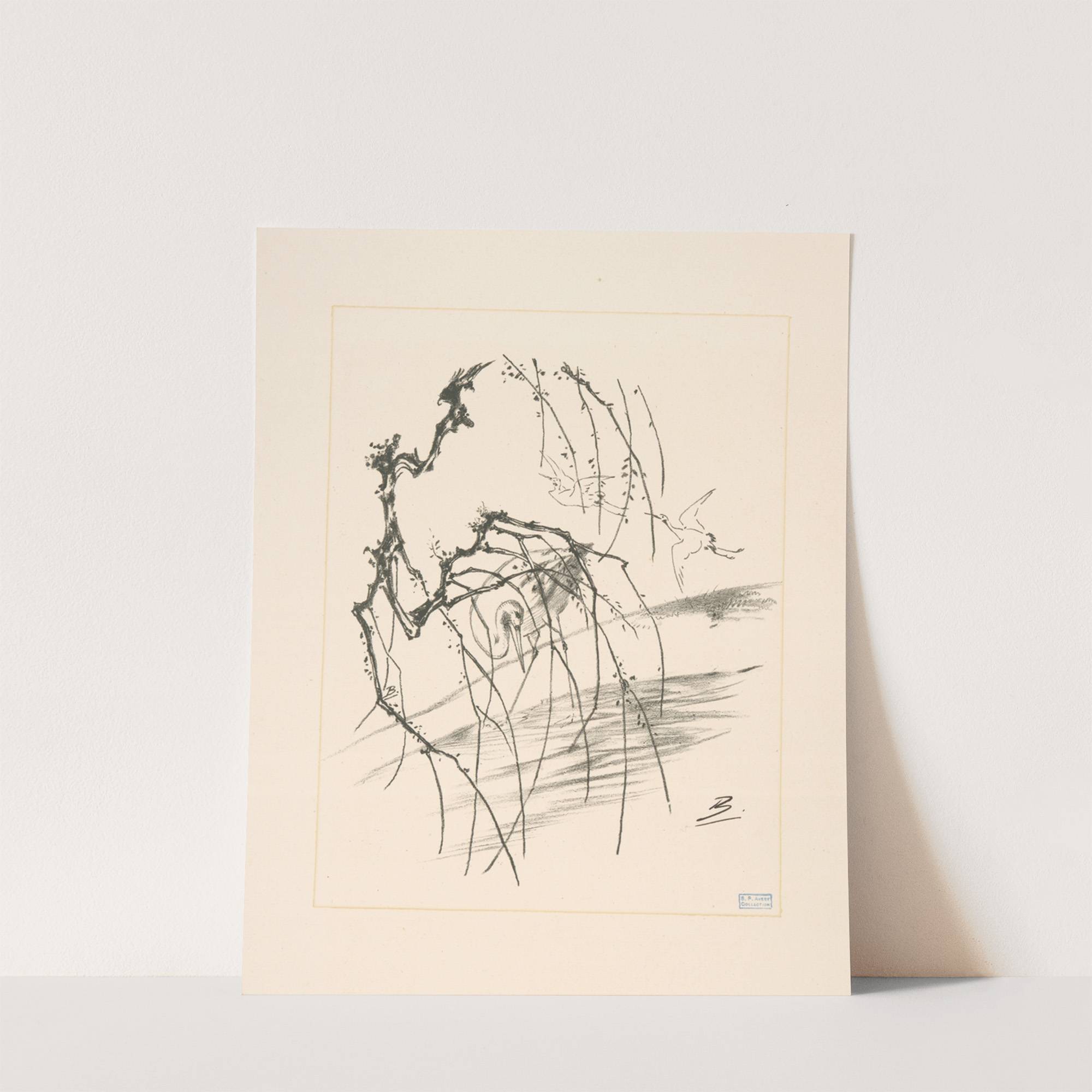 Grues derrière une branche d’arbre. (1866 - 1878) by Félix Bracquemond - Wall Art Print