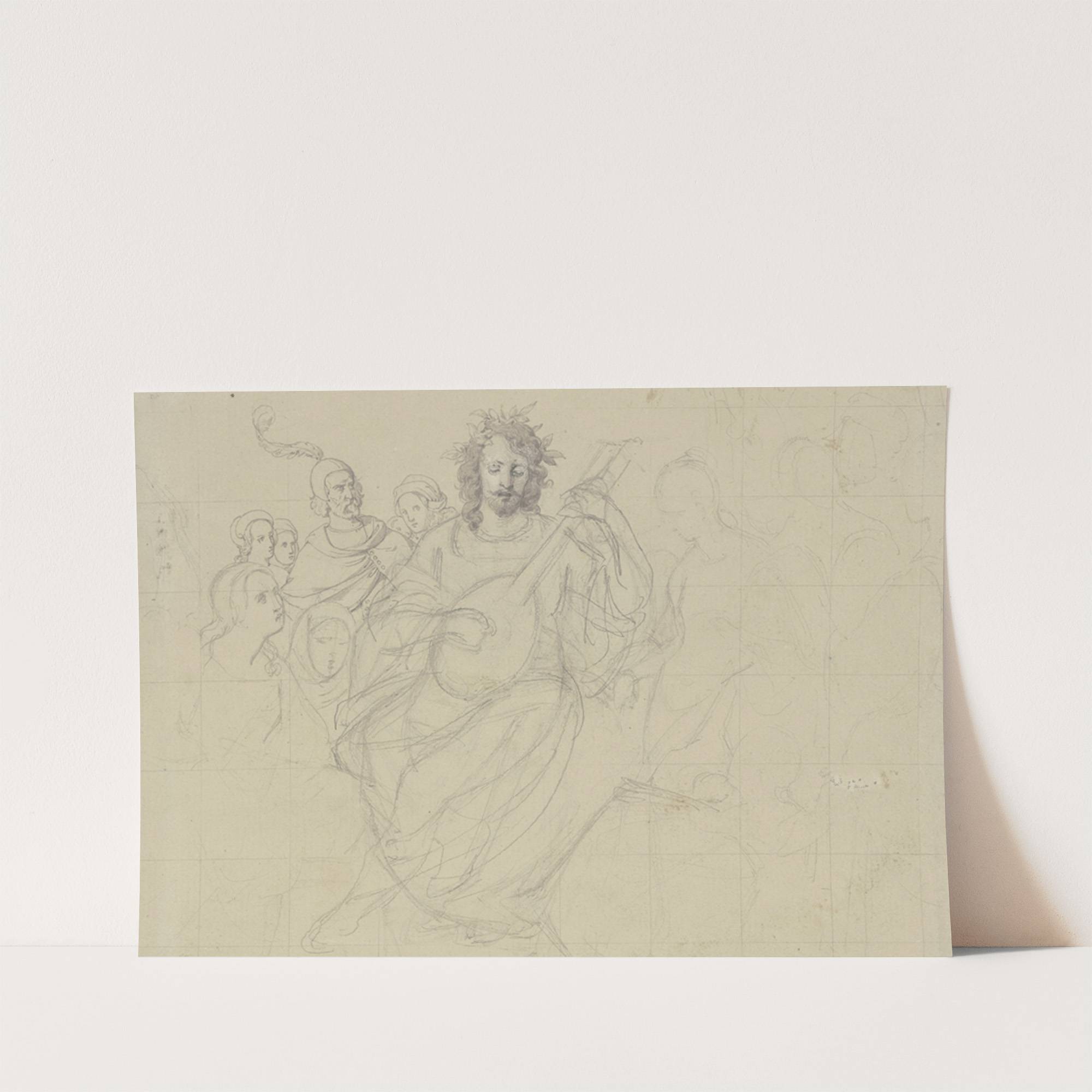 Gruppe um einen lautespielenden, laubbekränzten Mann by Jakob Becker - Wall Art Print