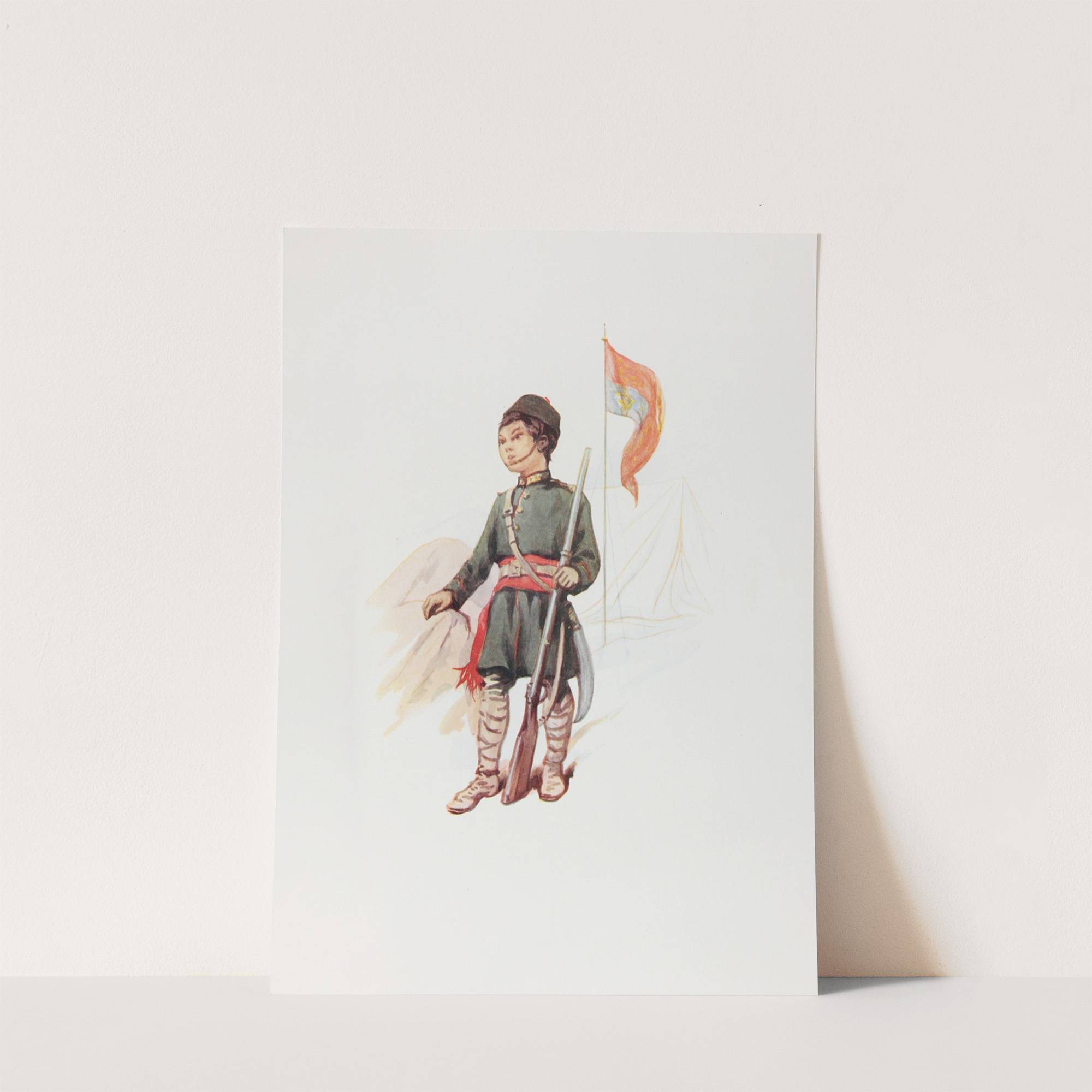 This print features "Gurkha" by A.H. Collins, a beautifully rendered illustration of a young soldier from the Gurkha Regiment. The artist has skillfully captured the essence of bravery and pride in this piece. The Gurkha stands confidently with a slight...