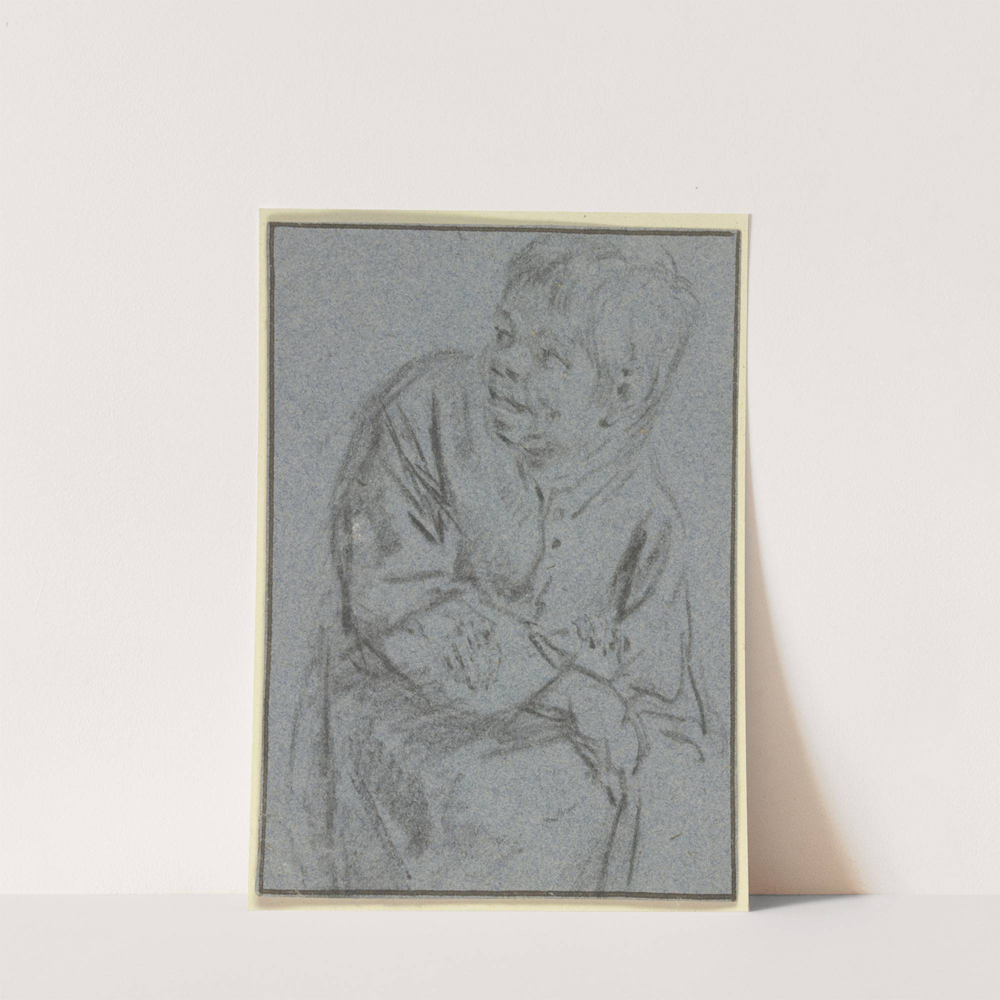 This black-and-white graphite drawing by Adriaen van Ostade features a tender depiction of two young boys hugging closely. The lines are delicate yet expressive, capturing the gentle warmth of their embrace. The boy on the left appears slightly taller and...