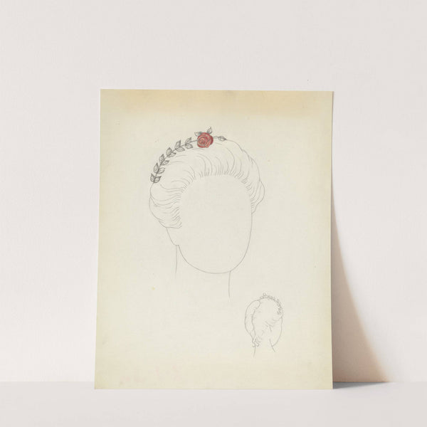 This elegant art print features a minimalist line drawing of a female figure's head, delicately outlined with fine black lines against a white background. The subject is adorned with a gracefully curved braid that starts at the crown and gently...