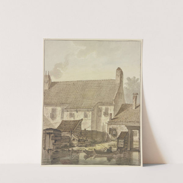 Häuserzeile am Wasser, vorne zwei Kähne mit einem Angler by Johannes Hendrik Knoop - Wall Art Print