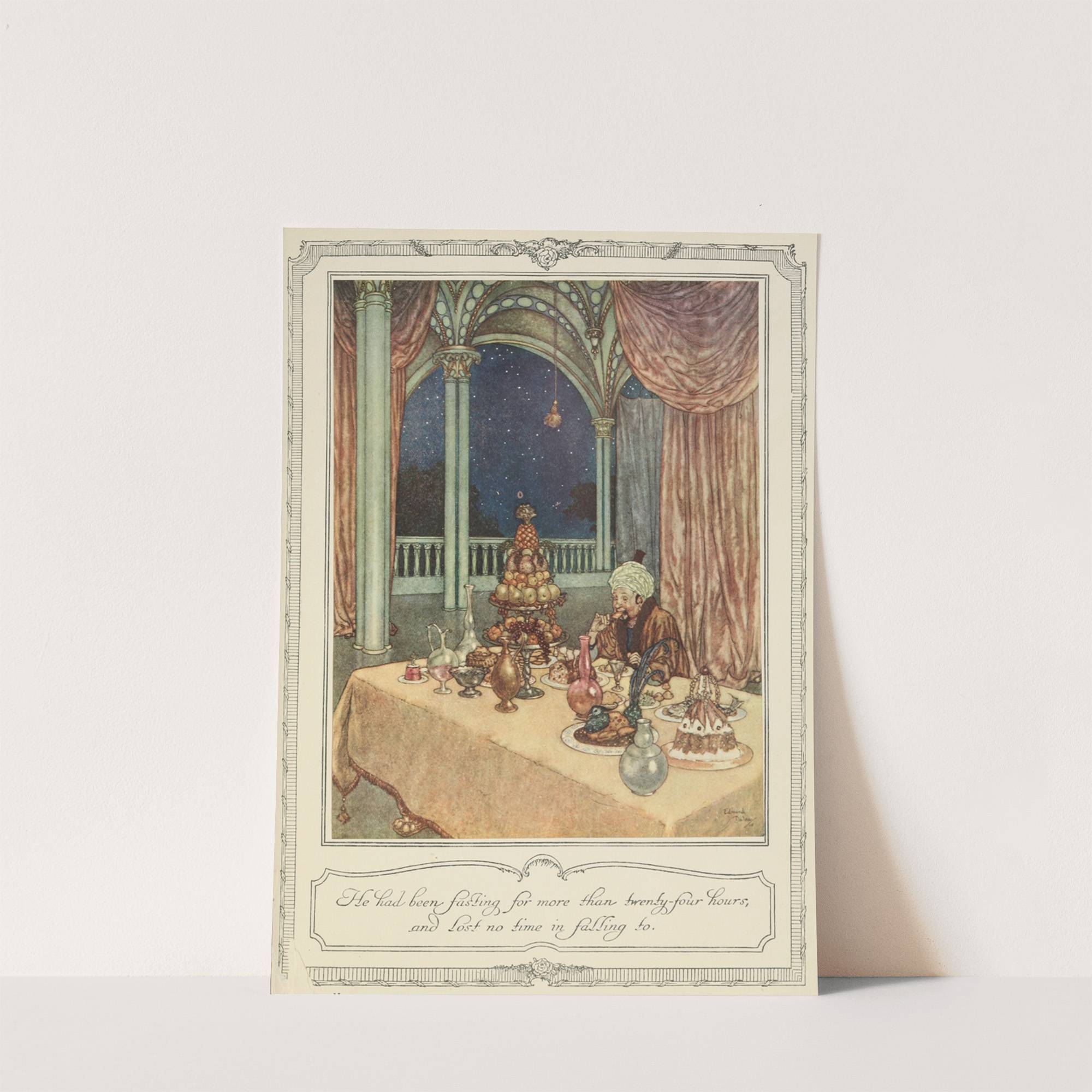 He had been fasting for more than twenty-four hours and lost no time in falling to (1910) by Edmund Dulac - Wall Art Print