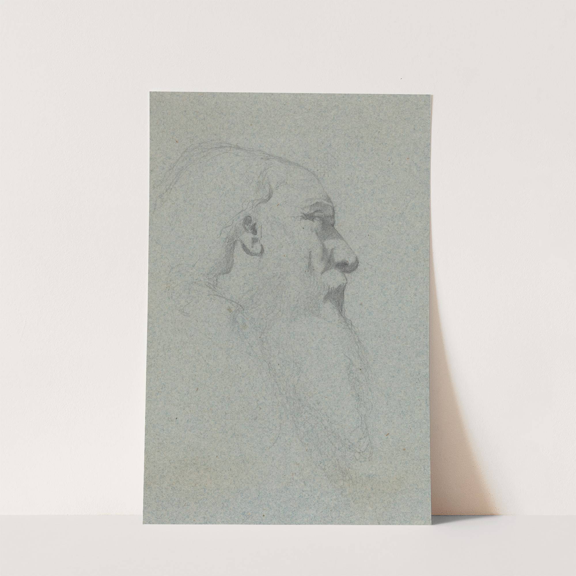 This art print showcases "Head of a Bearded Man, Looking Right" by the renowned artist Alexandre Bida. Rendered in soft pencil on textured paper, this monochromatic drawing captures the intricacies of an elderly man's profile in exquisite detail. The subject's...