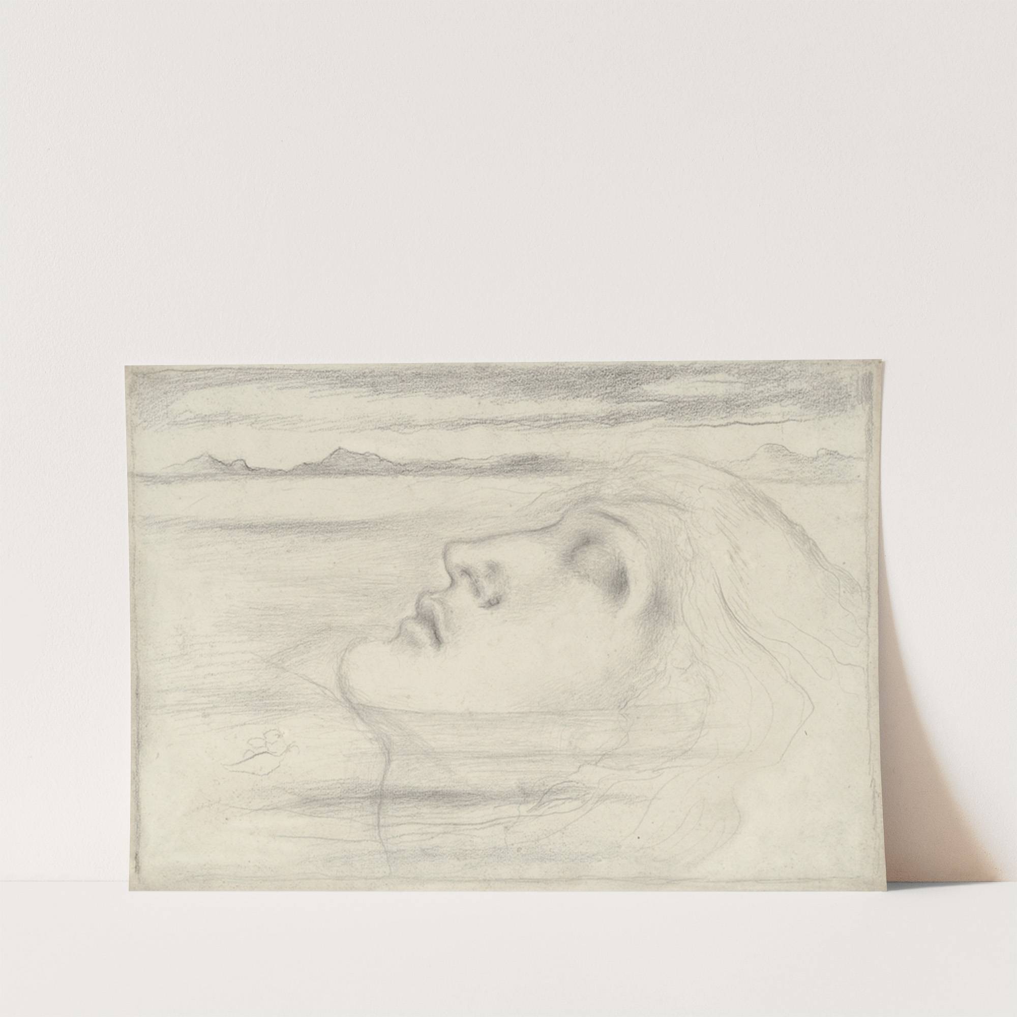 This art print features "Head Study" by Simeon Solomon, a delicate pencil drawing with intricate shading techniques that bring out the subtle details of the subject's profile. The portrait is rendered in soft black-and-white tones, emphasizing the delicate curves and...