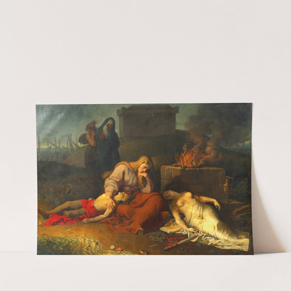 Hecabe with the corpses of her children Polyxena and Polydoros at the tomb of Achilles by Karl Russ - Wall Art Print
