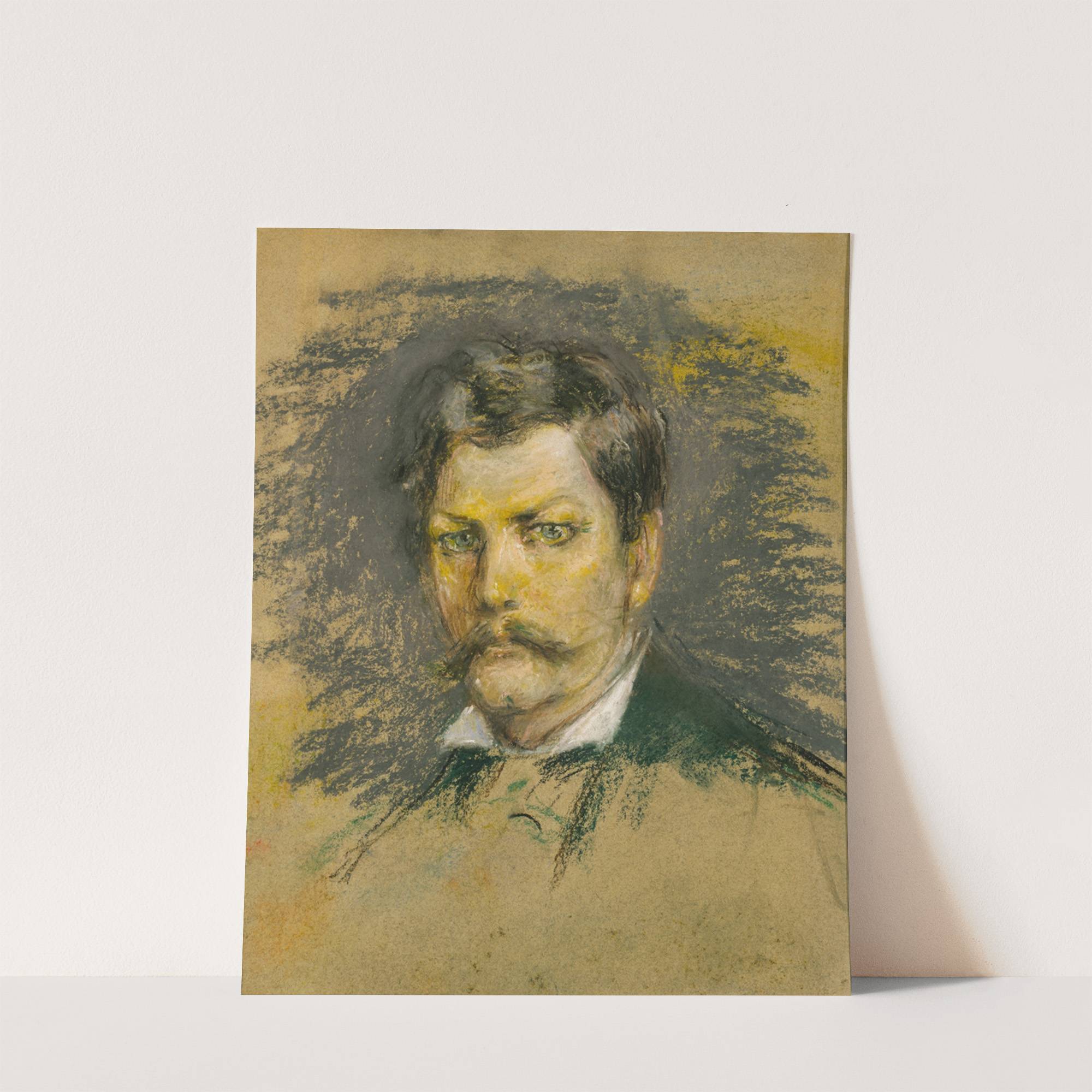 This captivating portrait is a digital rendition of "Henry M. Stanley" by the artist Alice Pike Barney. The image features a detailed, expressive painting of a man with a serious yet introspective gaze. His dark brown hair is slightly tousled,...