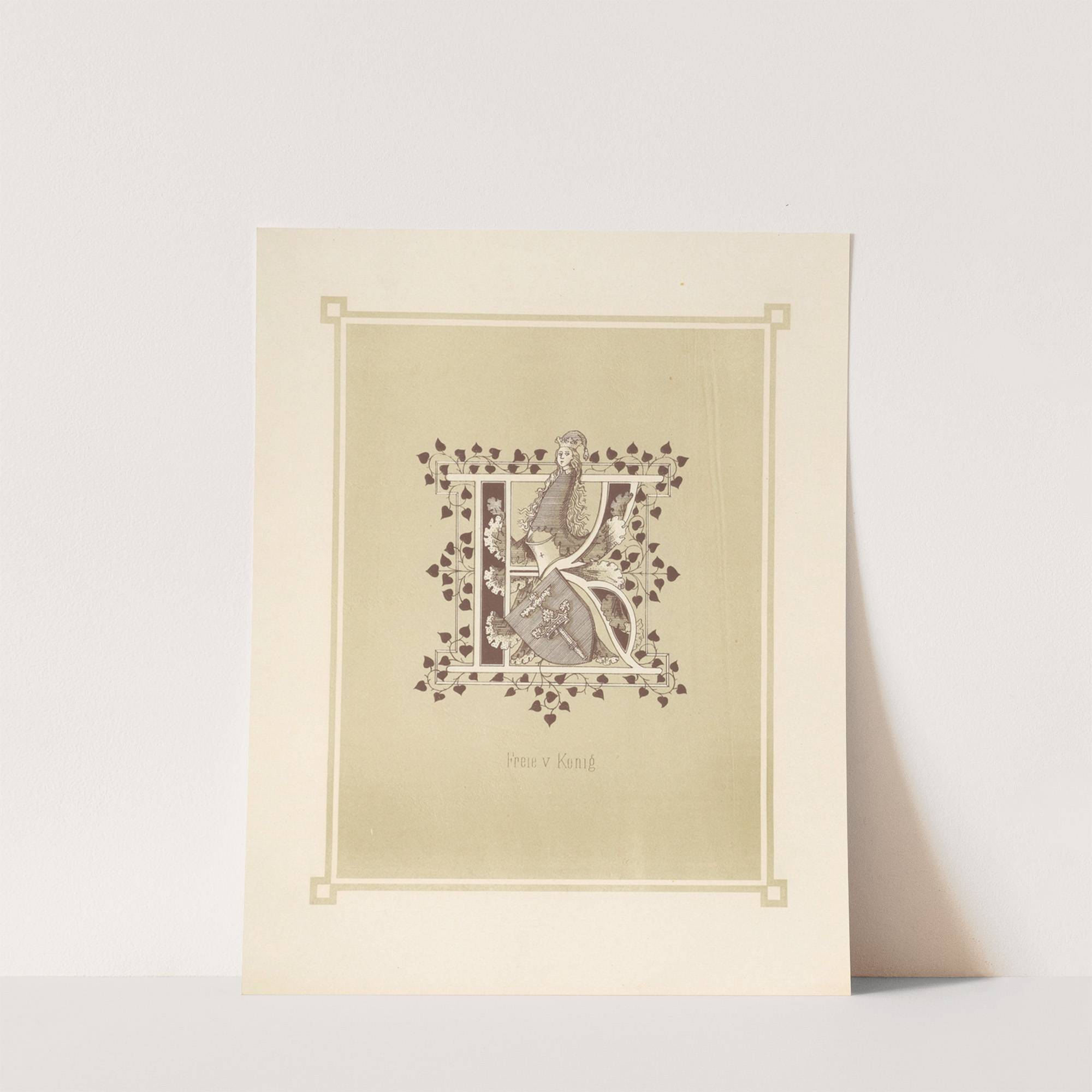 This art print features a beautifully detailed illustration from Heraldische Alphabet Pl.11 (1884) by Adolf Matthias Hildebrandt. The composition is centered around the letter "U" intricately designed with floral and leaf motifs. A serene female figure, dressed in delicate lace...