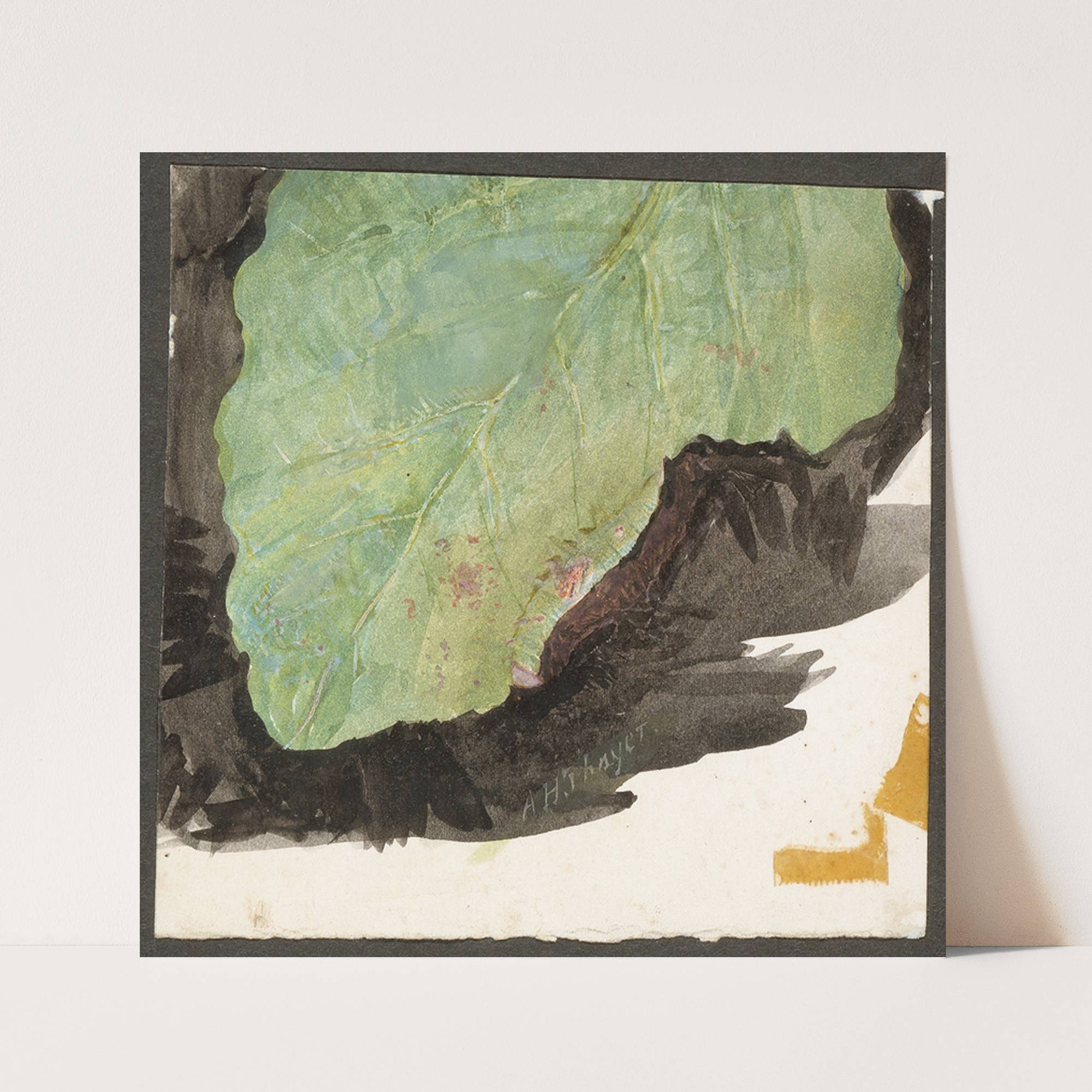 This artwork showcases a stunning close-up of a large leaf, artistically rendered to highlight its natural beauty and intricate details. The leaf is painted with a delicate array of light greens and subtle yellows, featuring faint vein patterns that add...