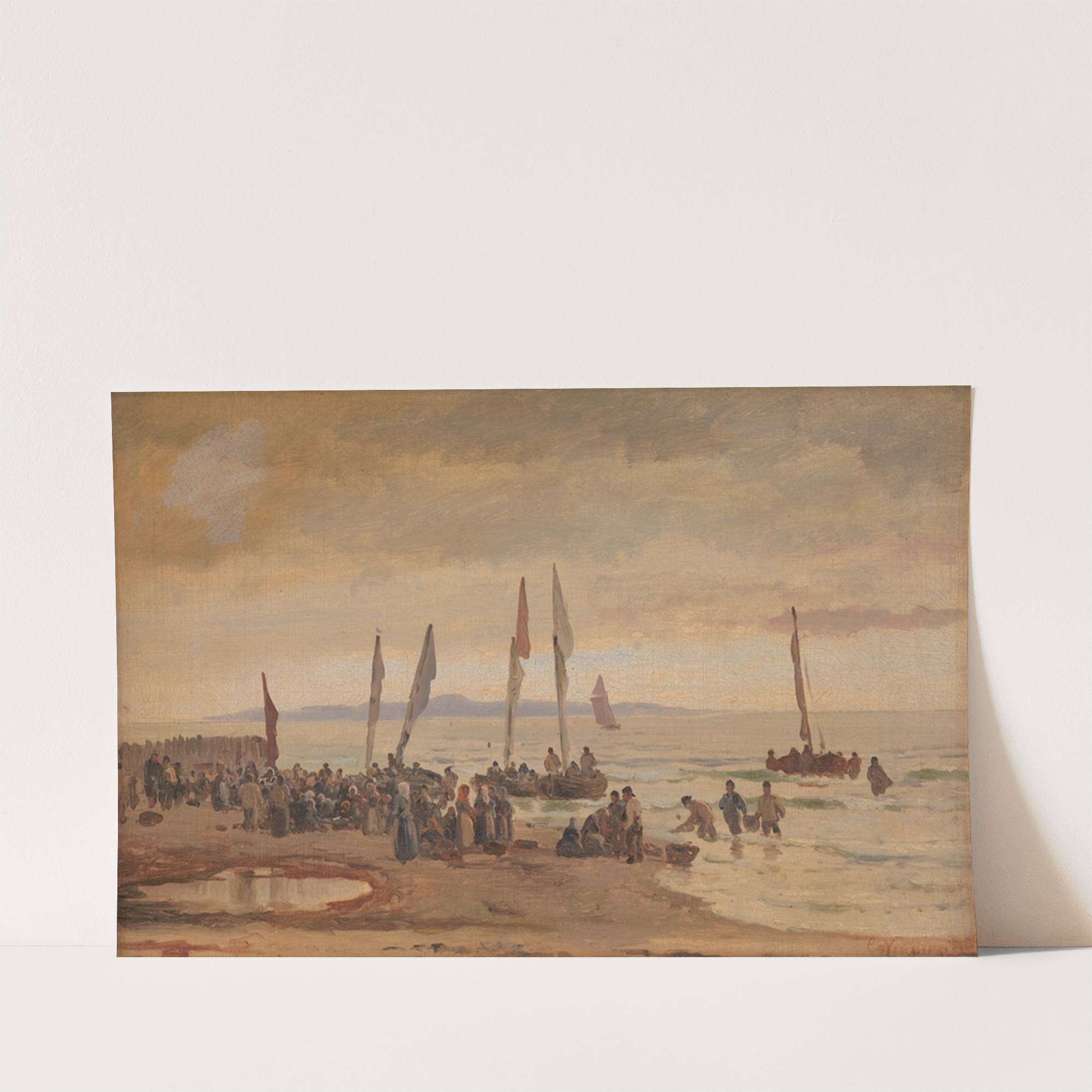 Hjemvendende fiskere modtages på Hornbæk Strand by Carl Neumann - Wall Art Print