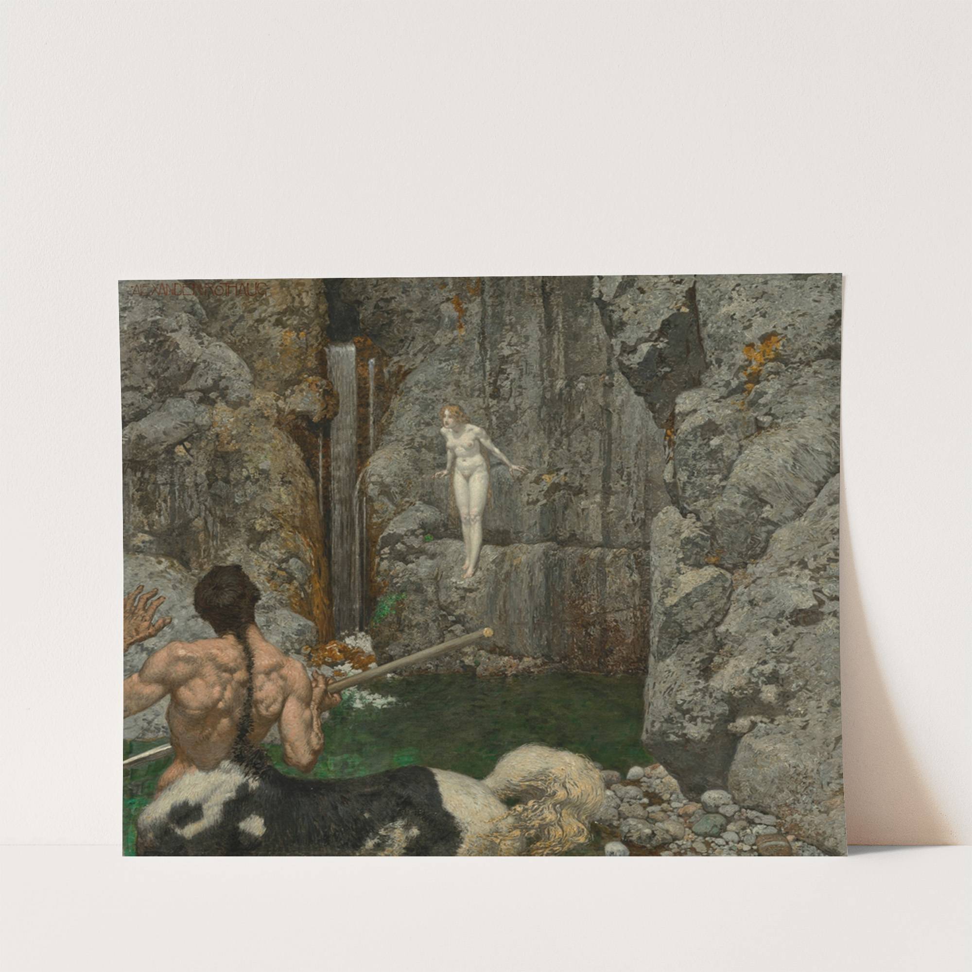 Immerse yourself in the captivating world of "Hol'Über! (Get Over!)" by artist Alexander Rothaug. This digital artwork features an intense scene set in a rugged, rocky canyon with towering gray cliffs and cascading waterfalls. At the center, a muscular man...