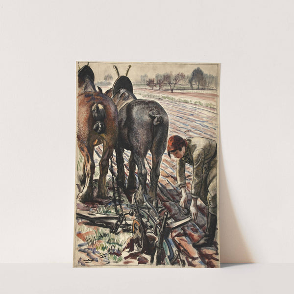 Horse-drawn plough, land girl by Laura Knight - Wall Art Print